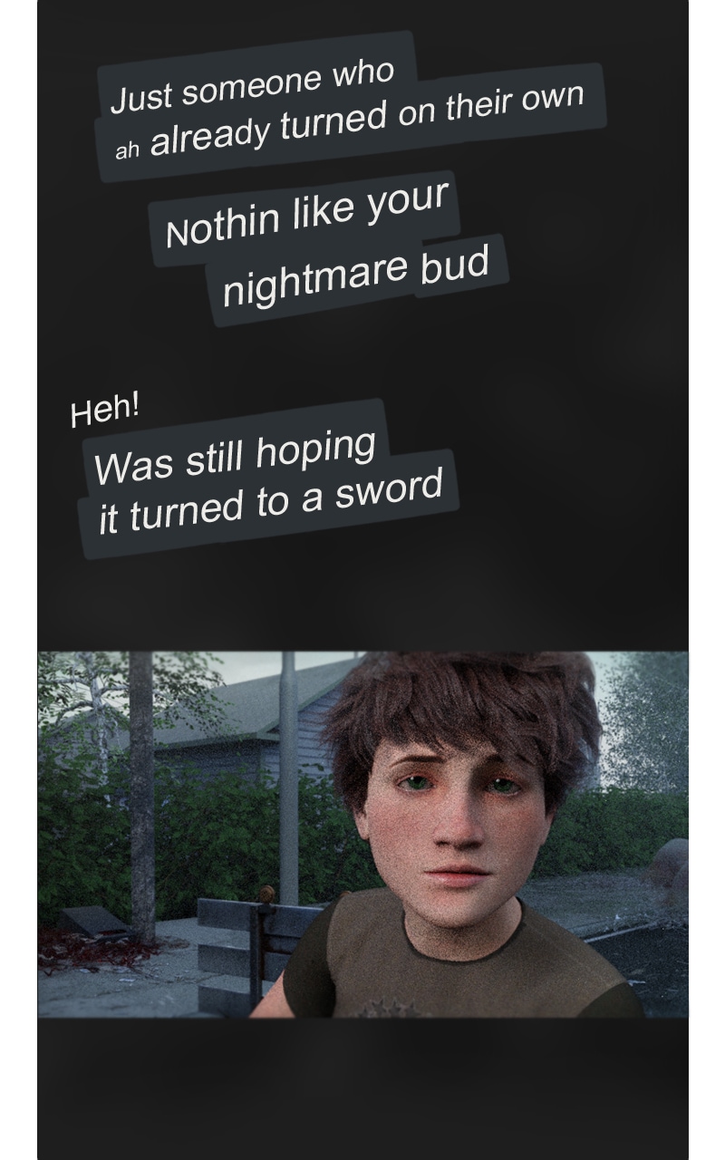 With hopes to reunite with the parents in Brier, the Moriarty bros begin their journey on foot. First they must cross the chilling remains of their once comforting neighborhood. Owen is shaken by his horrid out of body experience and the fact that they may be the ones infecting people. Evan assures him its just a nightmare, but only time will tell. There's no time to overthink as a new challenger emerges!