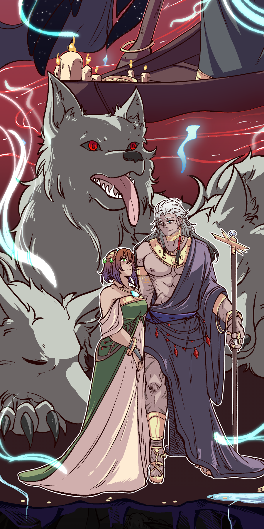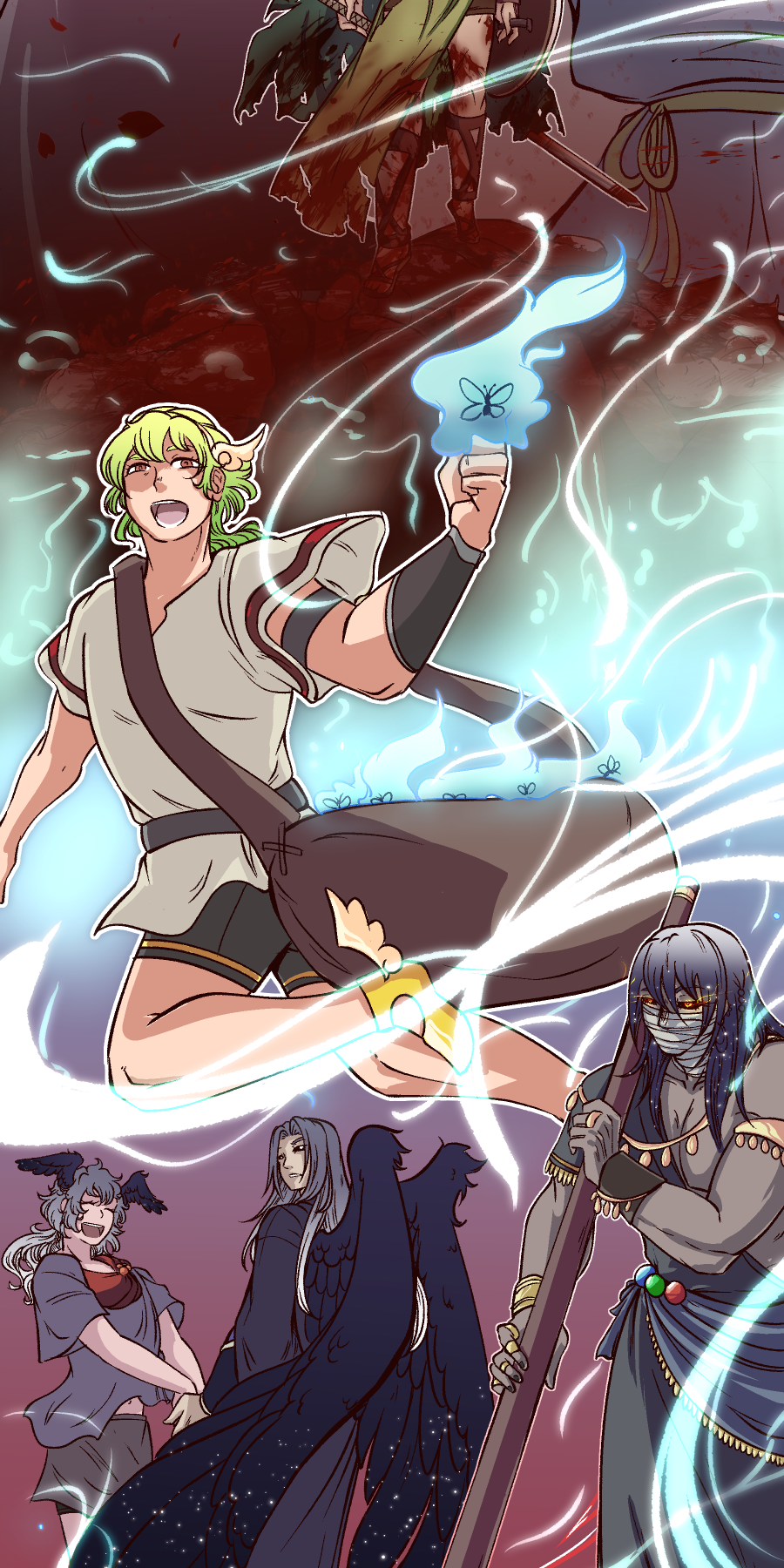 I just wanted to illustrate some characters (Gods, mortals, Chthonic, and Tartarus/Erebus, in order). Hopefully, it's easy to tell who is who (aside from the mortals' portion in the center.) I like most of the character designs, but not all of them. So, some might be subjected to change in the future.