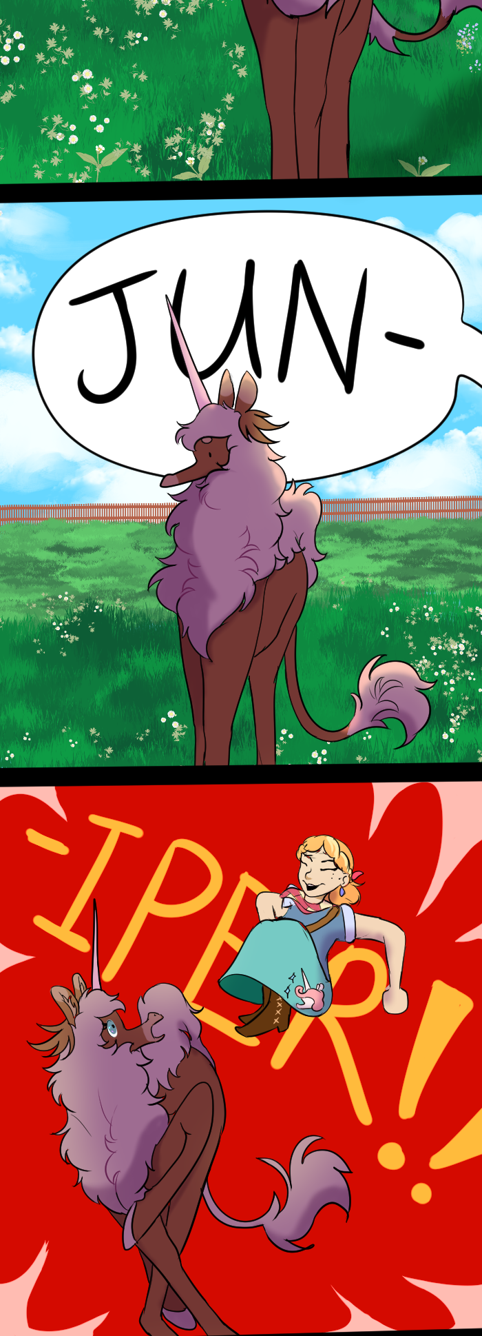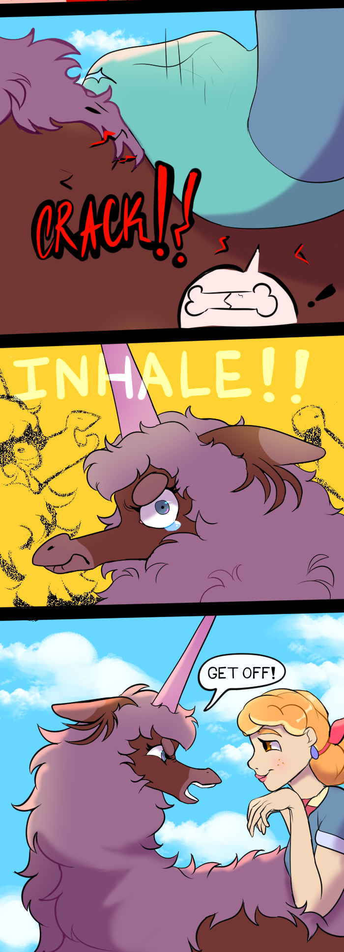 Really late post I know ╮ (. ❛ ᴗ ❛.) ╭ sowy I almost lost my files so I spent a long time trying to find them, but I did so (づ。◕‿‿◕。)づ You remember the hybrid from the earlier episodes. Look at her glow up! I thought her design should change like the other unicorns to make her species more identifiable, but just in generall my line work is so much better.
