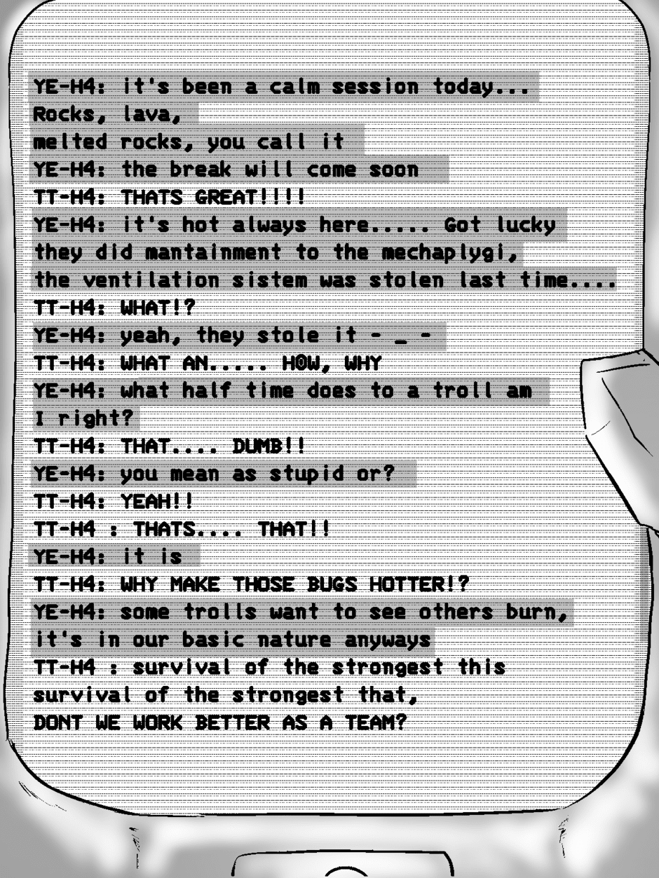 Thank you for integrating chatlogs so intelligently, I've seen a comic where people would whip out their phones to talk between rooms for absolutely no godforsaken reason and this comic healed that old wound on my heart