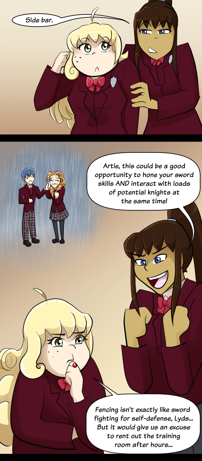 Navigating your last year of secondary school is difficult enough without a talking owl telling you that you are the magical reincarnation of King Arthur of Camelot, but here we are. Through the power of love, friendship, determination, and an ancient interdimensional deity empowered by fate itself, Artie and her friends will battle for the fate of the realms against the forces of evil, and maybe even pass their final exams!
