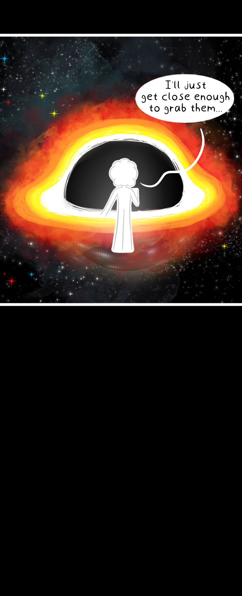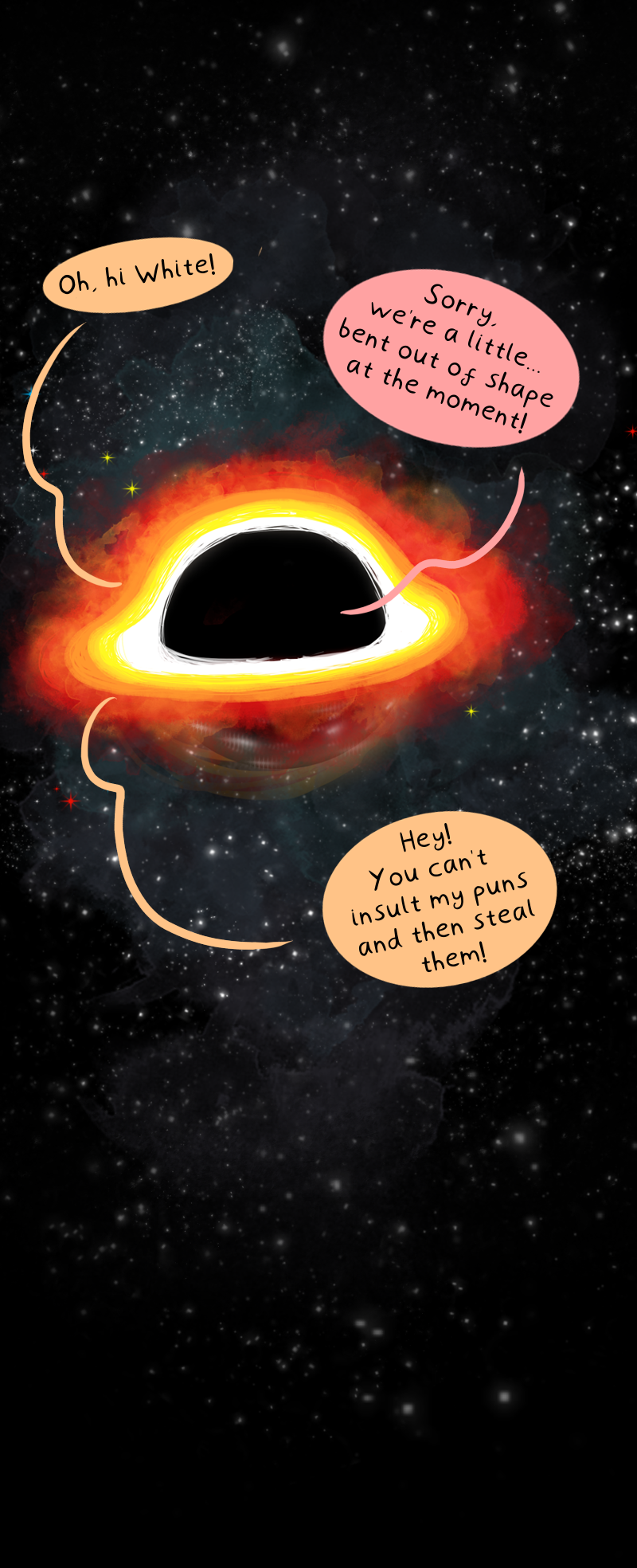 Fun fact: Black holes have such strong gravity that nothing can escape them, not even light - the fastest thing in the universe!