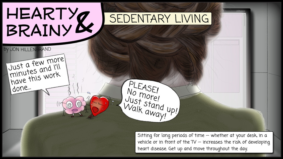 Don’t sit still this week! It’s not good for your heart. Hearty & Brainy think you should take the time each day to get up and move. What do you do to stay active throughout the day? Find out more at http://www.facebook.com/northshoreweb
