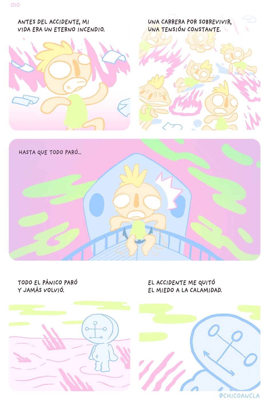 En un anterior comic hablé de lo que el accidente me quitó, pero también me dió cosas. Supongo que te pone en perspectiva de qué es lo importante. Desde entonces no me agobio por casi nada. Si todo se derrumba simplemente seguiré.