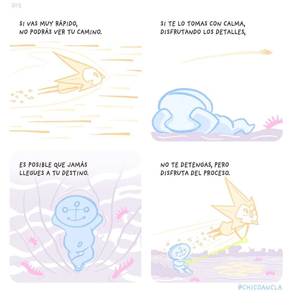 A veces queremos llegar lo antes posible a donde queremos y hemos forzado tanto que no nos hemos enterado de nada. Otras disfrutamos tanto del proceso que la meta en sí pierde sentido... Y al final no se materializan resultados. Encontrar el equilibrio es importante, si no, contar con un cómplice que te aporte la otra parte es maravilloso.