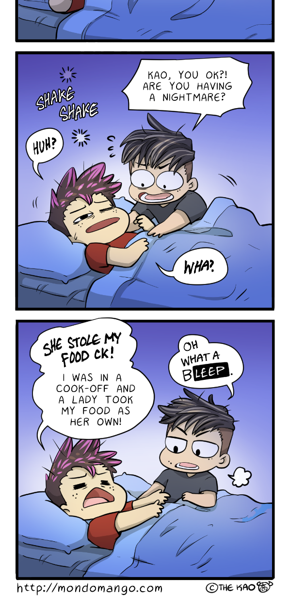 It usually happens when I find myself unable to speak in my dream and I am screaming to be heard. So I guess I try so hard I actually speak in my sleep. In this dream, I really wanted to tell this lady off for stealing my food.