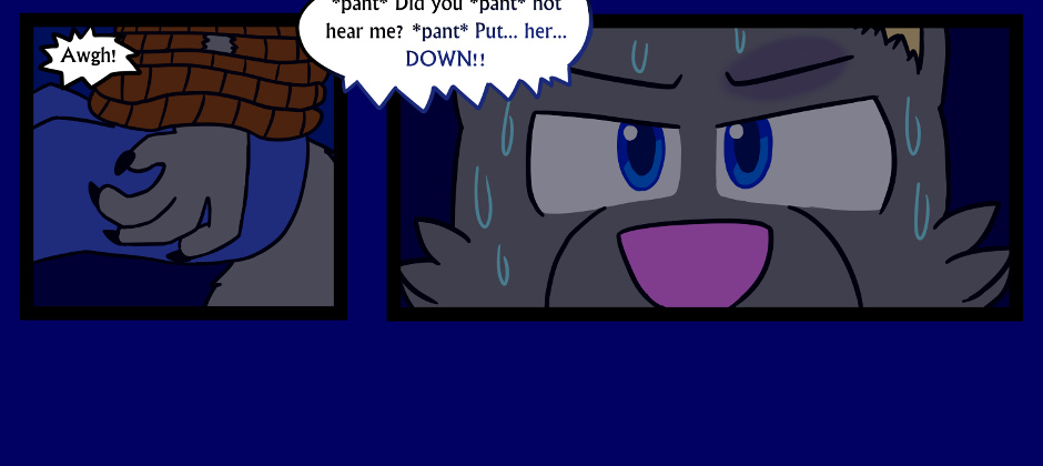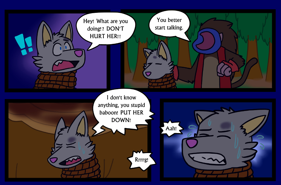 That see-through view through the ropes was more tricky than I thought it'd be. Also note that it's shown on page 11 that Lubo's hands aren't visible because of the ropes. We'll be seeing Lubo's alternate form soon.