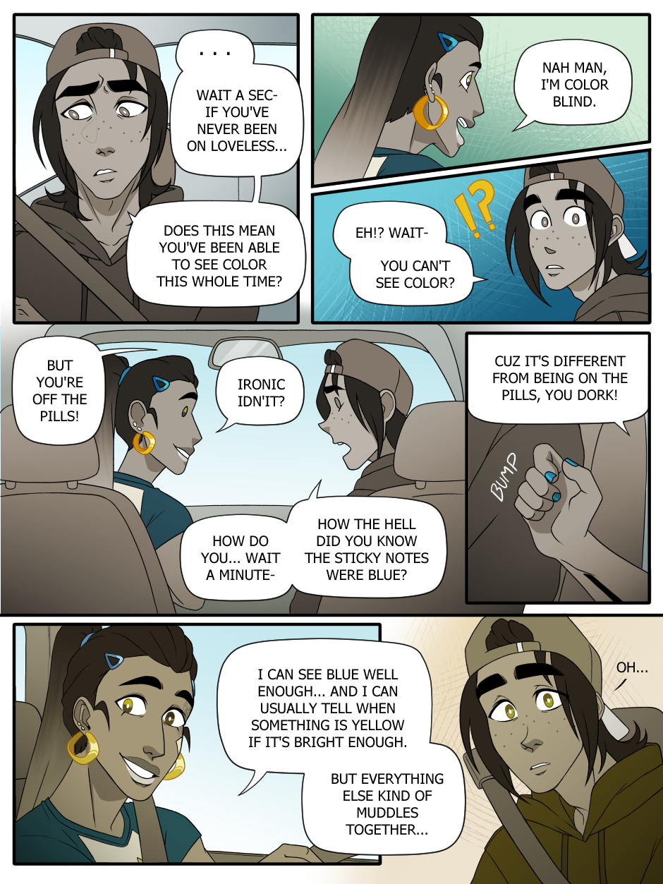 A couple of ya'll actually guessed jack was color blind last chapter so props to everyone who was paying attention to the color palettes!