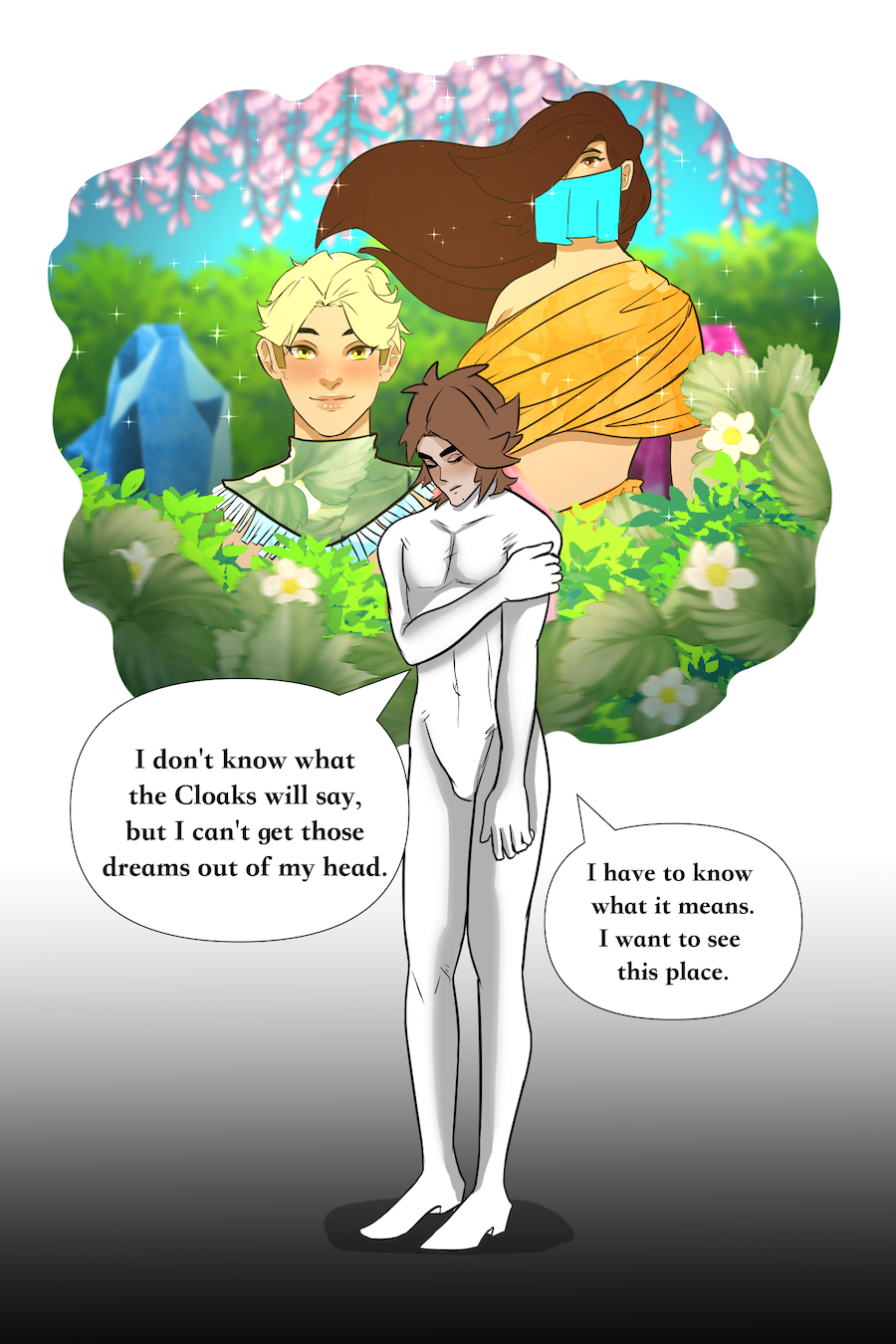 18 y/o Evalieh Lassoy refuses to follow his oppressive society's rules and gets thrown into a world of magic and freedom as punishment. He is found by sun worshiping bean people who dub him their "Divine One" and task him with saving their island and the 6 magical clans so that, he can survive the encroaching enemy and secure his path back home. Although he's short tempered, easily excited, and small-minded, he starts to warm up to this strange new world and its people.