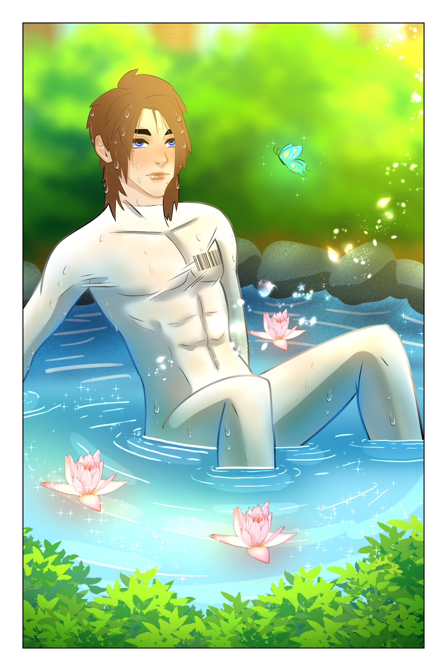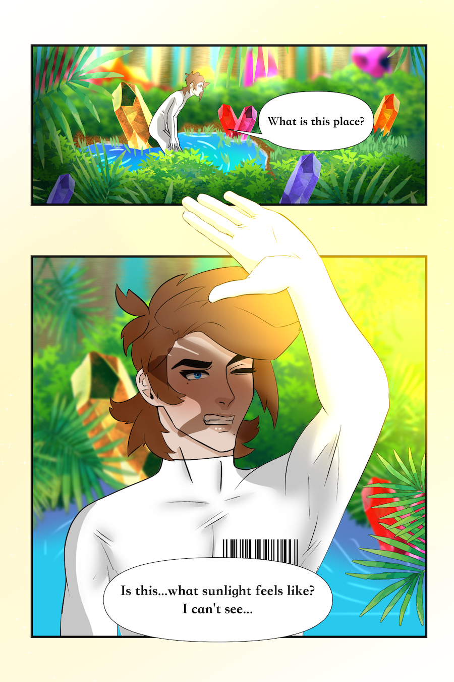 18 y/o Evalieh Lassoy refuses to follow his oppressive society's rules and gets thrown into a world of magic and freedom as punishment. He is found by sun worshiping bean people who dub him their "Divine One" and task him with saving their island and the 6 magical clans so that, he can survive the encroaching enemy and secure his path back home. Although he's short tempered, easily excited, and small-minded, he starts to warm up to this strange new world and its people.