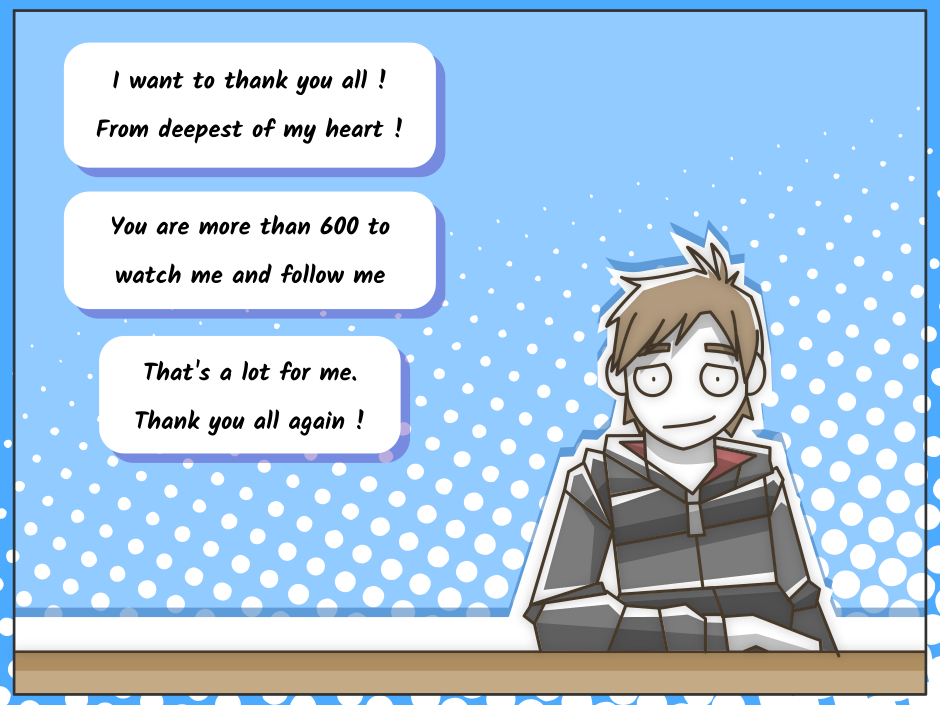 A special comic strip, on the occasion of my 600 watchers, on the Deviantart site.