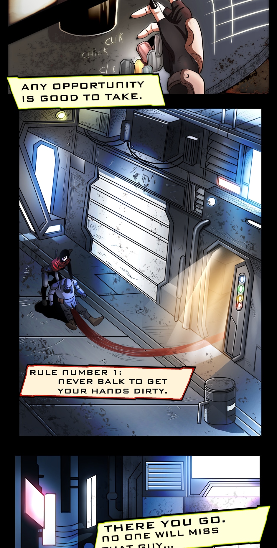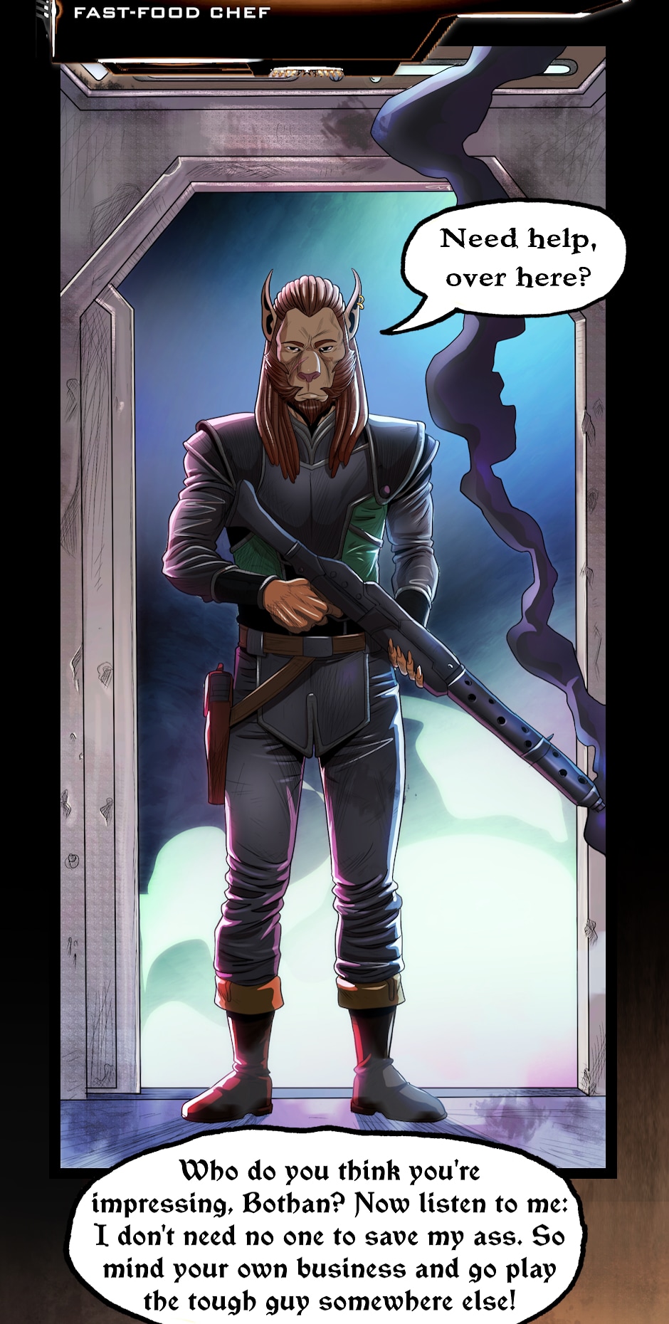 So far I have to say: wow, that the graphic style of your webcomic is absolutely stunning! I'm a huge fan of traditional sci-fi and your art style perfectly captures the essence of the genre. The way you blend classic elements with your own unique twist creates a truly immersive experience for the reader. Your attention to detail is remarkable, from the intricate spaceship designs to the otherworldly landscapes. I find myself getting lost in your comic's pages, marveling at the beautiful illustrations and imagining myself exploring the universe alongside your characters. Your talent as an artist truly shines through in every panel. Keep up the amazing work!