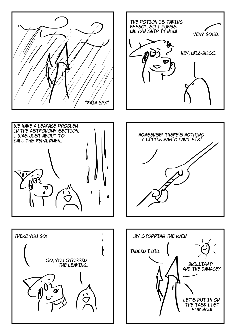 Through light themes such as positivism and one's life values to the less light ones such as Weltschmerz and crushing nihilism, the comic follows the adventures of a certain Wizard Dog, a magical anthomorphic dog, and his friends, as they quest through seemingly nonsensical world of fantasy cliches, into the absurdity and beyond.