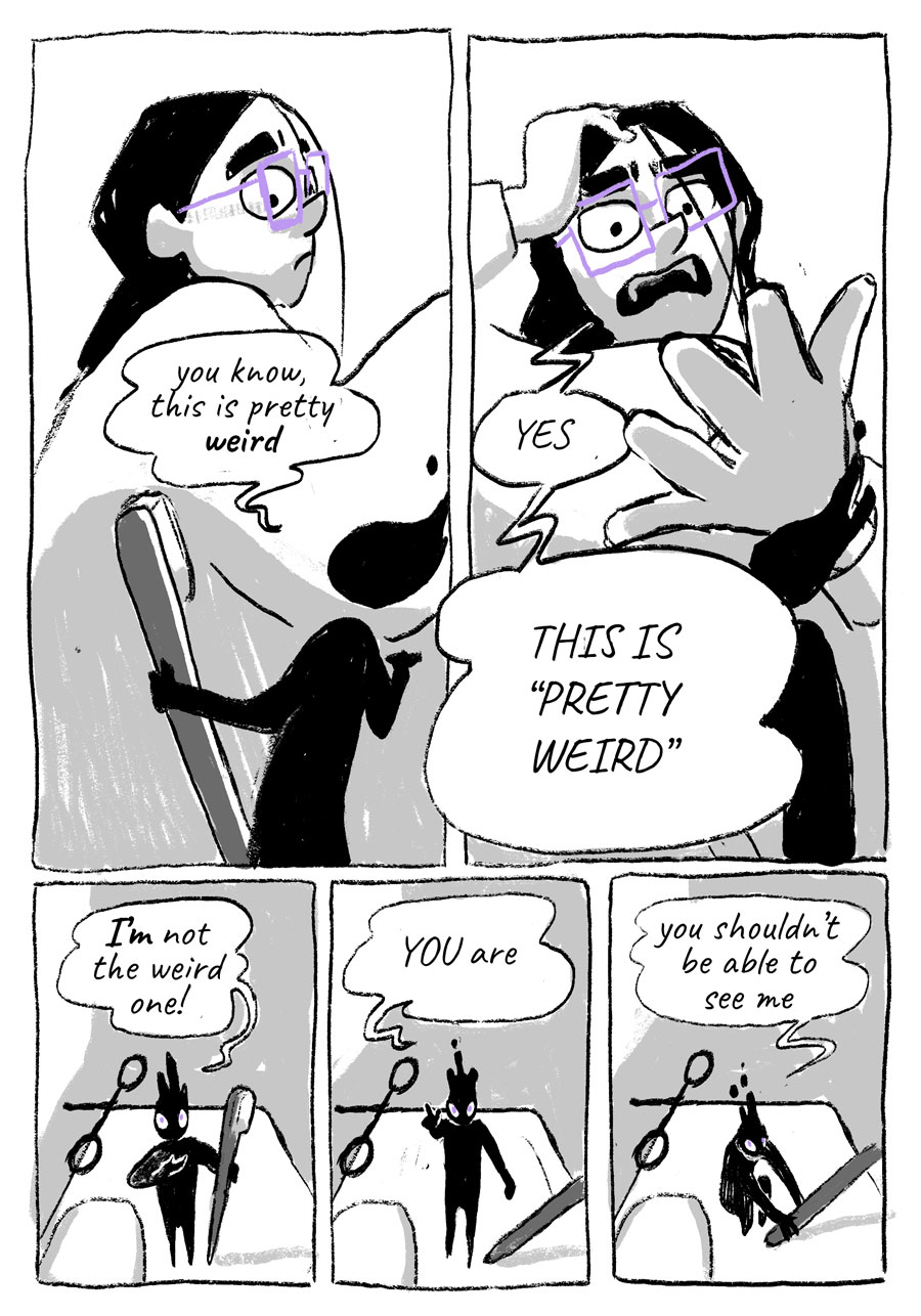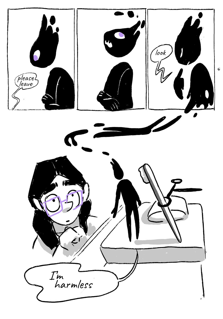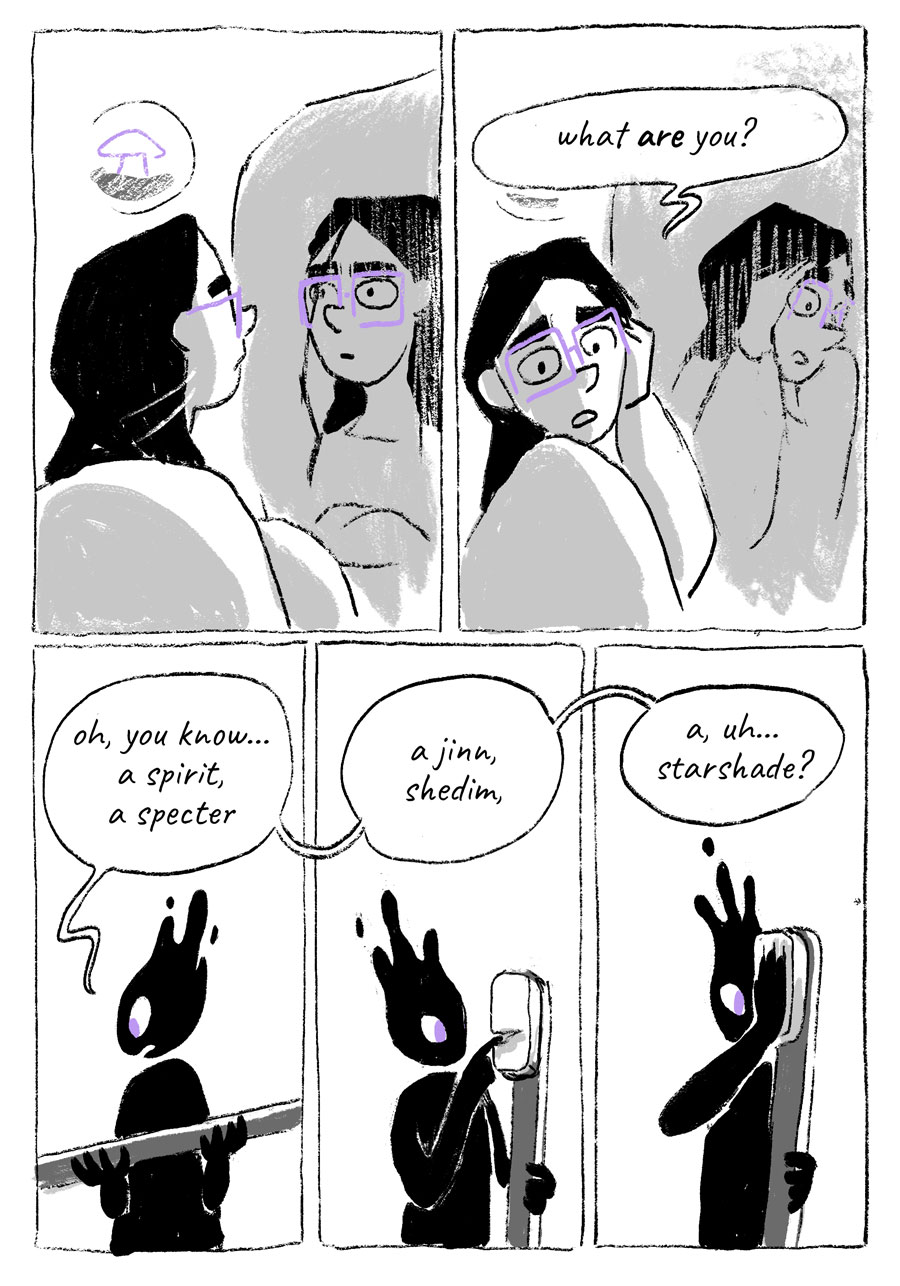 Starshade is the story of an otherworldly spirit, Zel, who is doomed to perform community service for petty theft. Sentenced to become a spirit guide, Zel is thrown for a loop when their assigned subject is unlike any they’ve shadowed before.