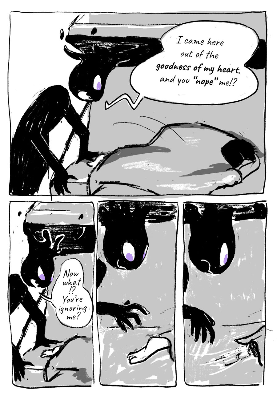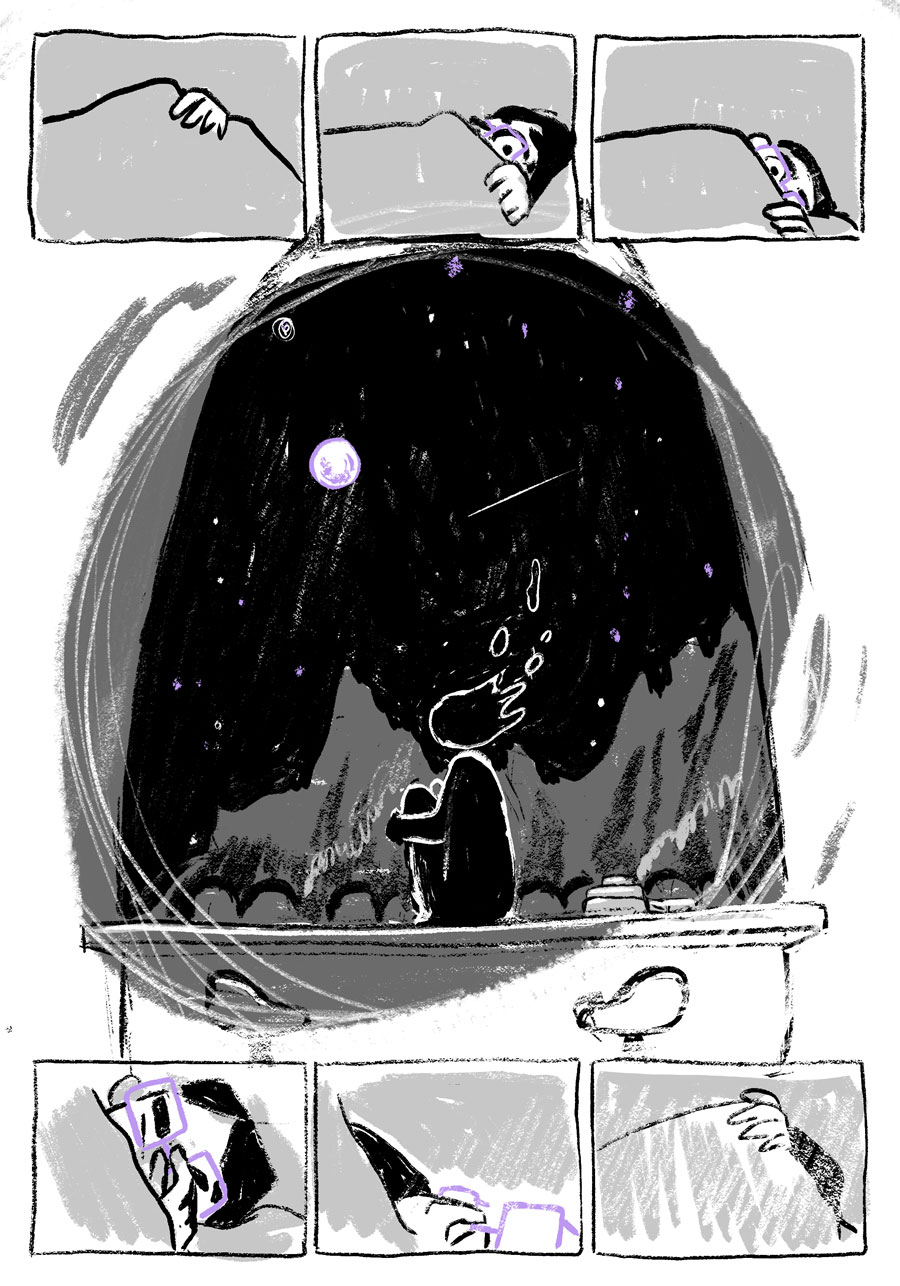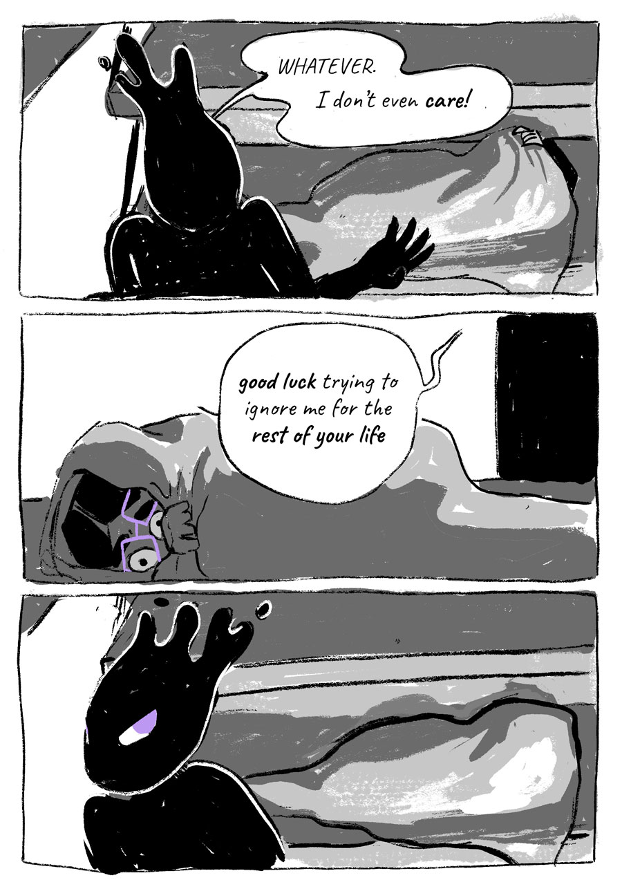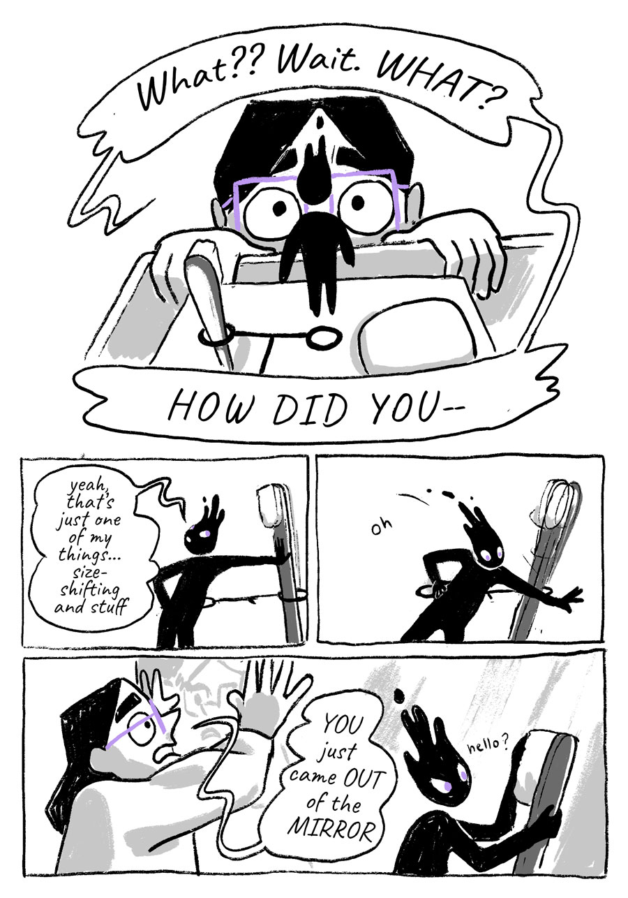 Starshade is the story of an otherworldly spirit, Zel, who is doomed to perform community service for petty theft. Sentenced to become a spirit guide, Zel is thrown for a loop when their assigned subject is unlike any they’ve shadowed before.