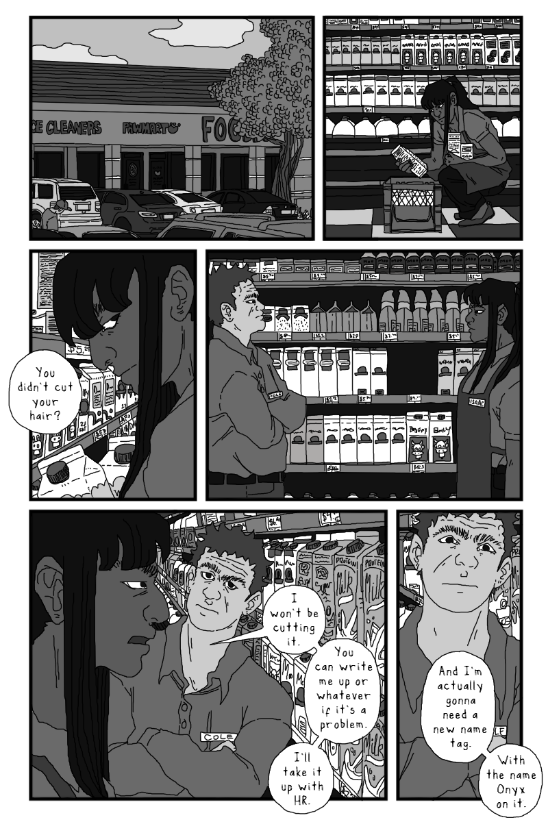 SO so much to love here!! First off the store background looks great, you did it again you absolute madman. I love how Onyx is drawn this chapter, especially her side profile in the first page. All the love for her standing up to her boss.