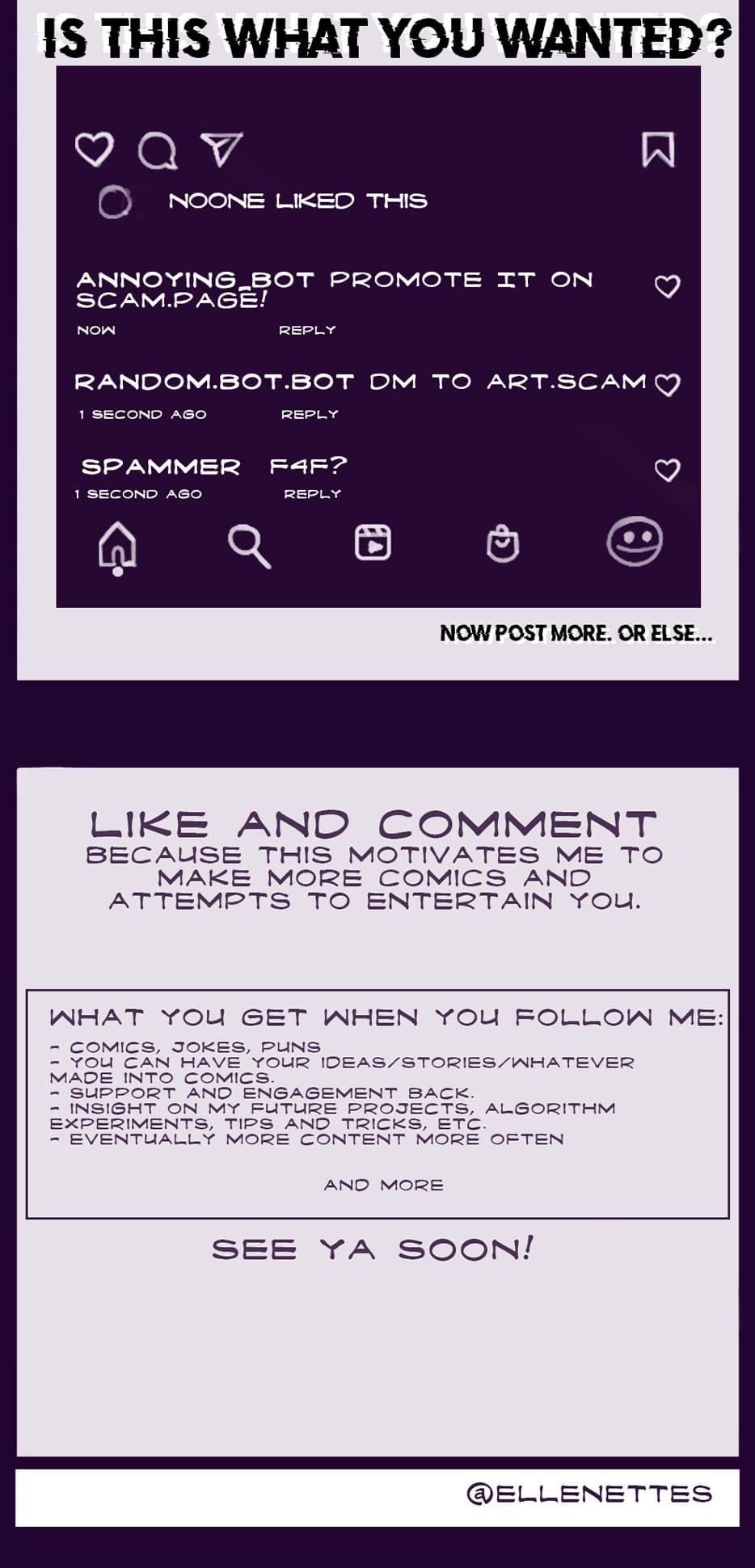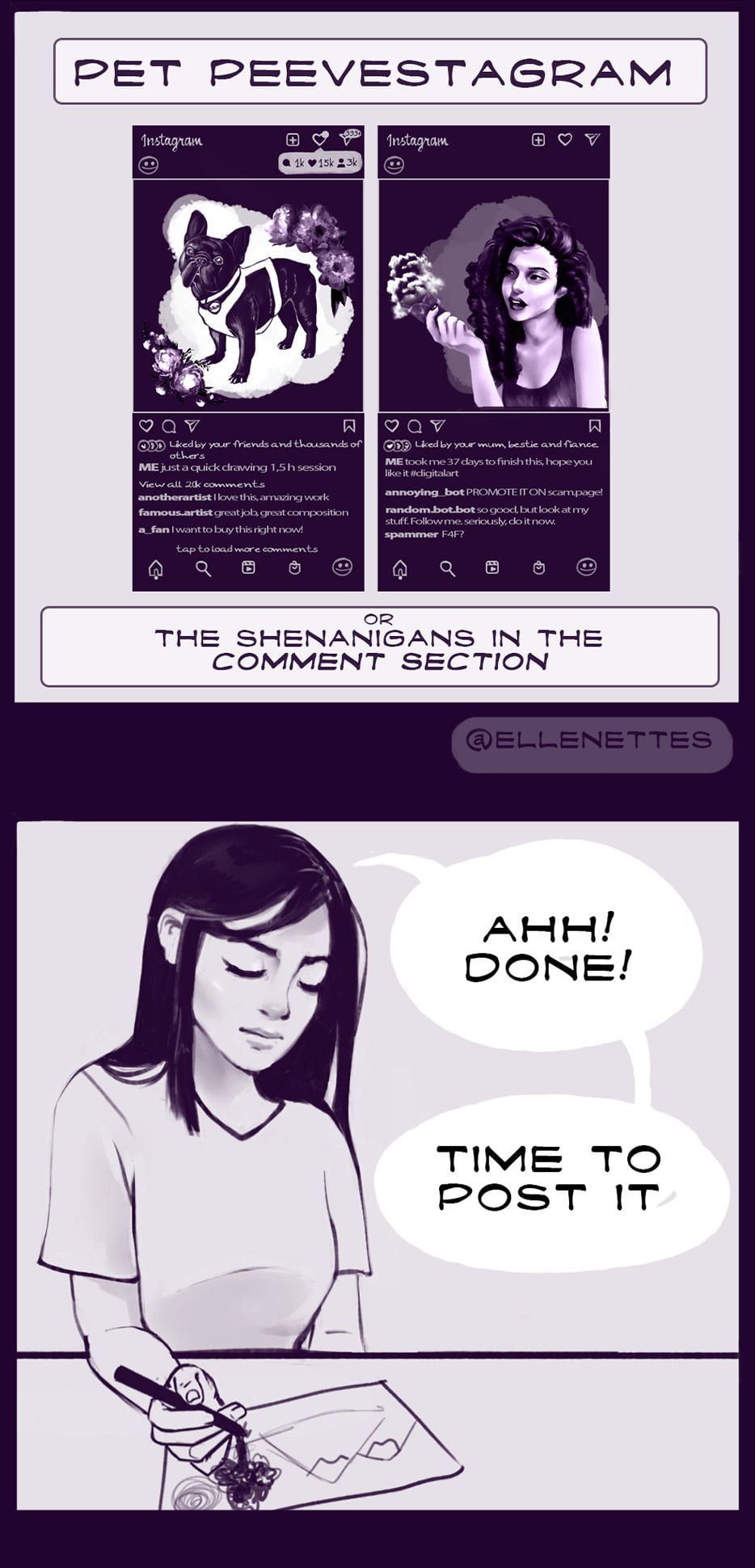 Quick little bitesize comics, created based on my life, observations, situations, things that make me laugh, or things that scare me. Featuring my lovely French bulldog - Krum and my amazing partner, and many more.