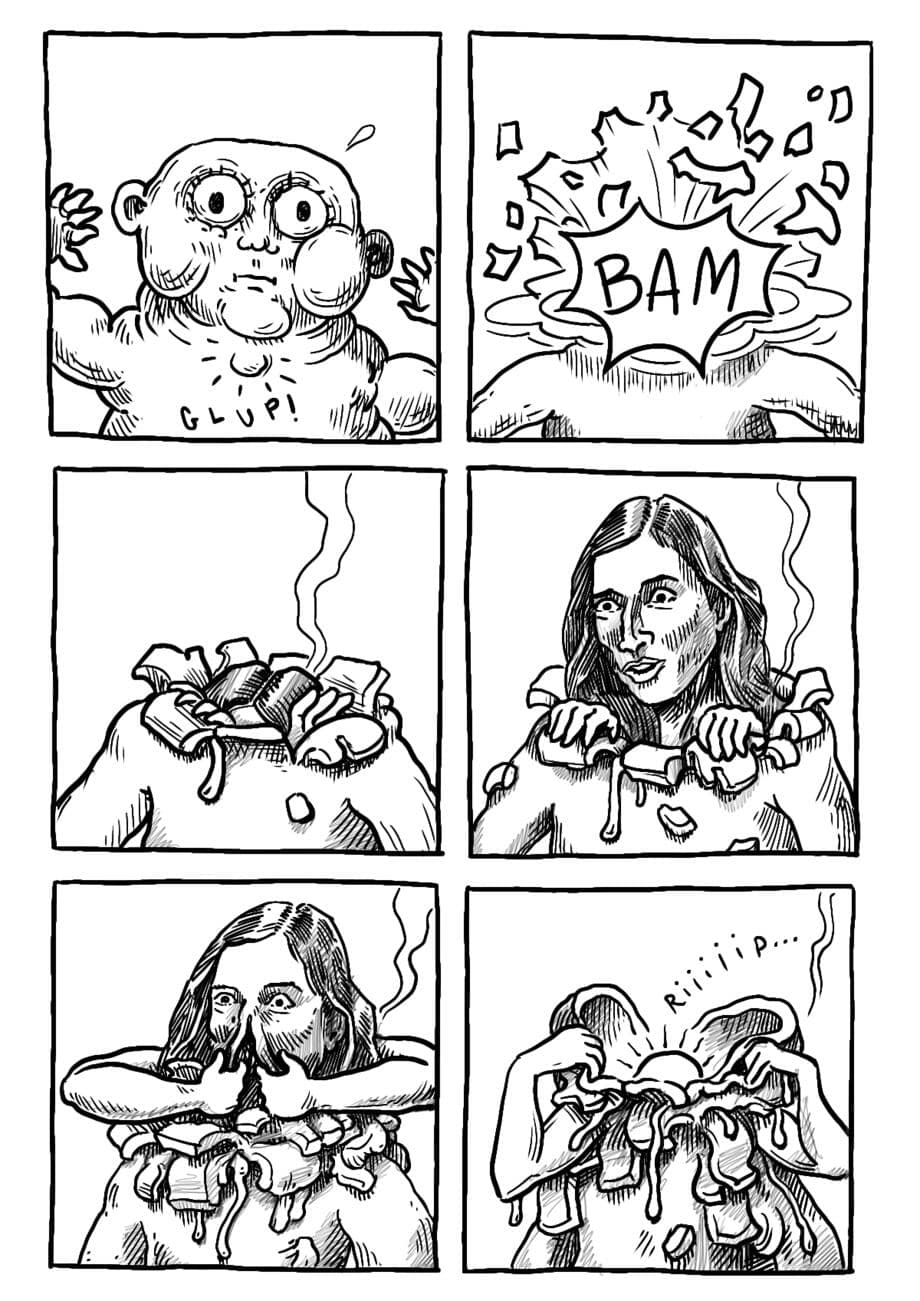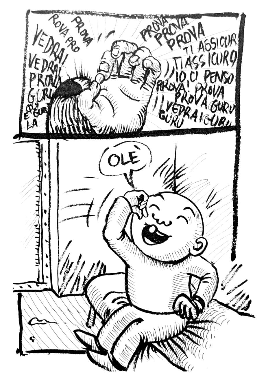 Onironauta is a silent comic. It tells the journey of a pilgrim through dreams, in an ever-changing and dreamlike atmosphere. The tones are surreal, visionary and there is no lack of continuous flashes of introspective intuition.