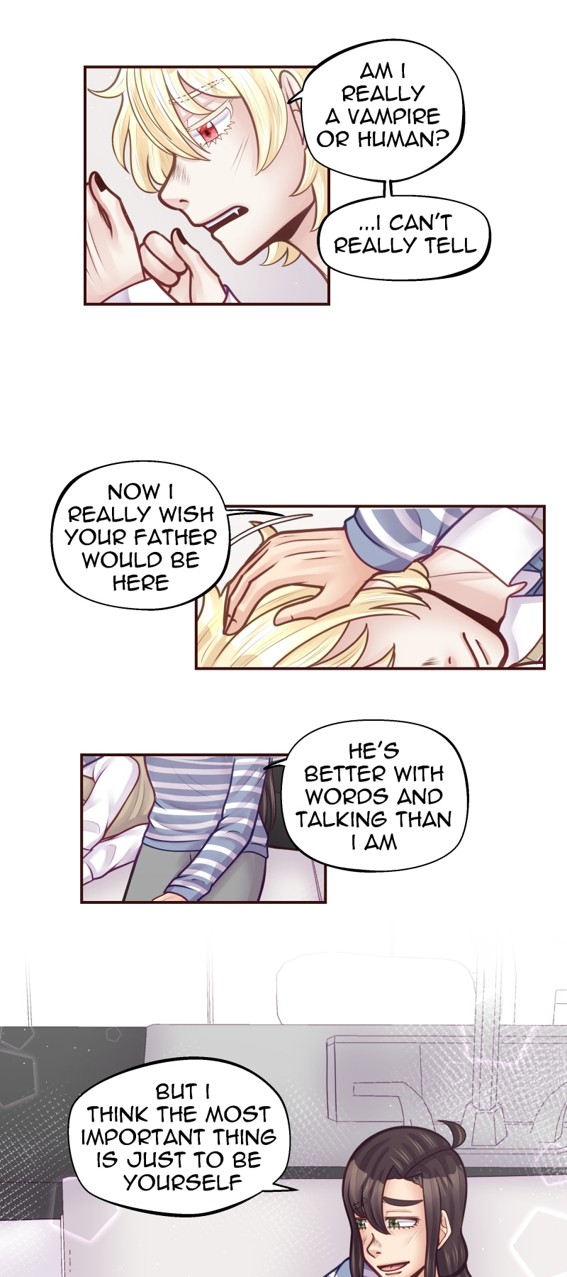 Human or vampire? 17 year old Chester questions where he stands in a divided world. Before finding his answer, a vampire makes him an offer he can't refuse. To make things more complicated, he becomes entangled with a handsome vampire hunter. Between this tender love and his new life, will Chester manage to find out just how different he is?