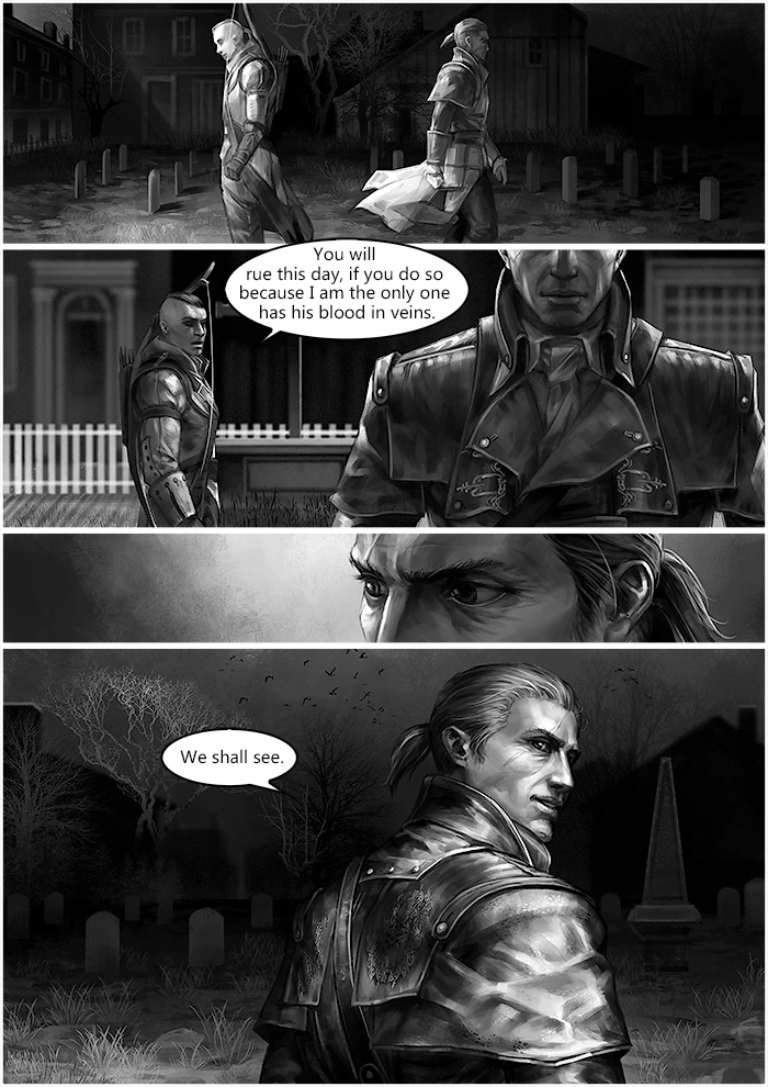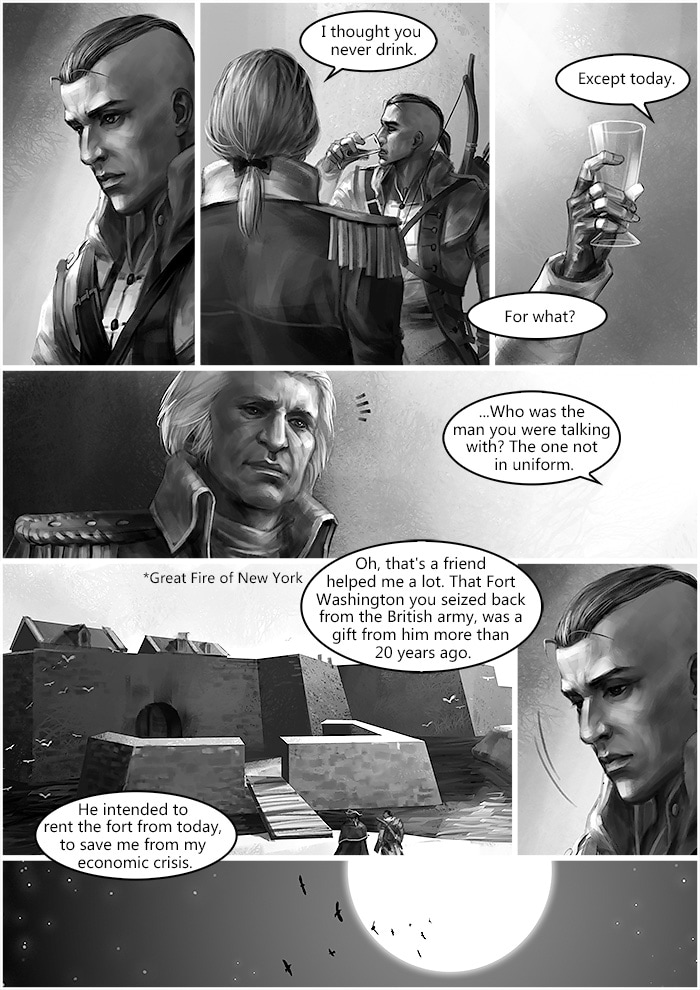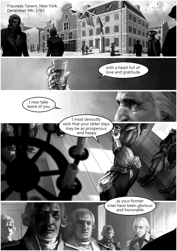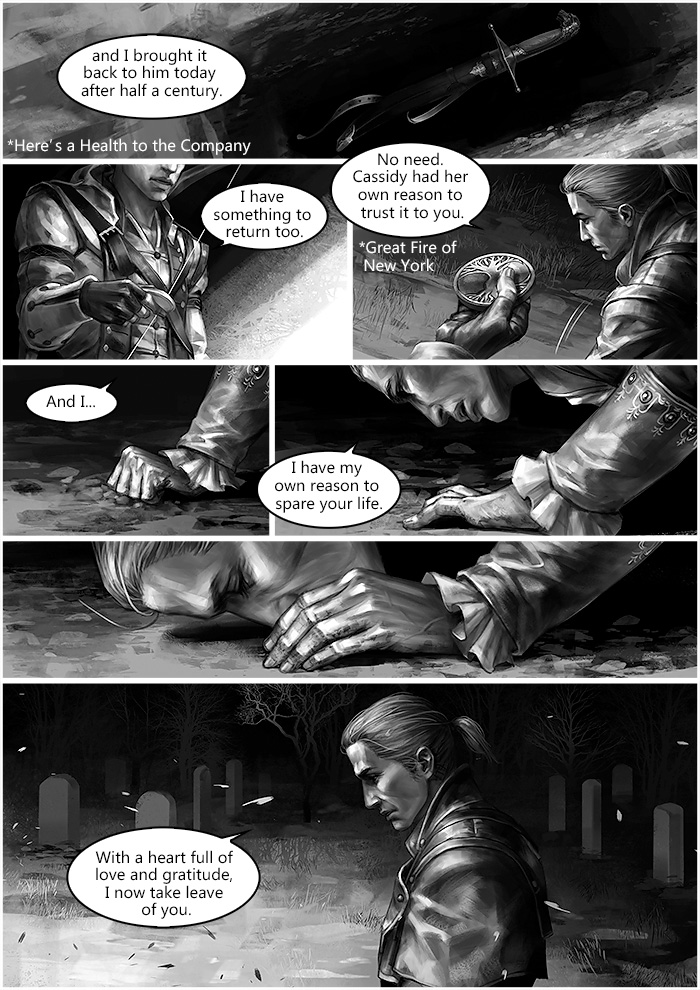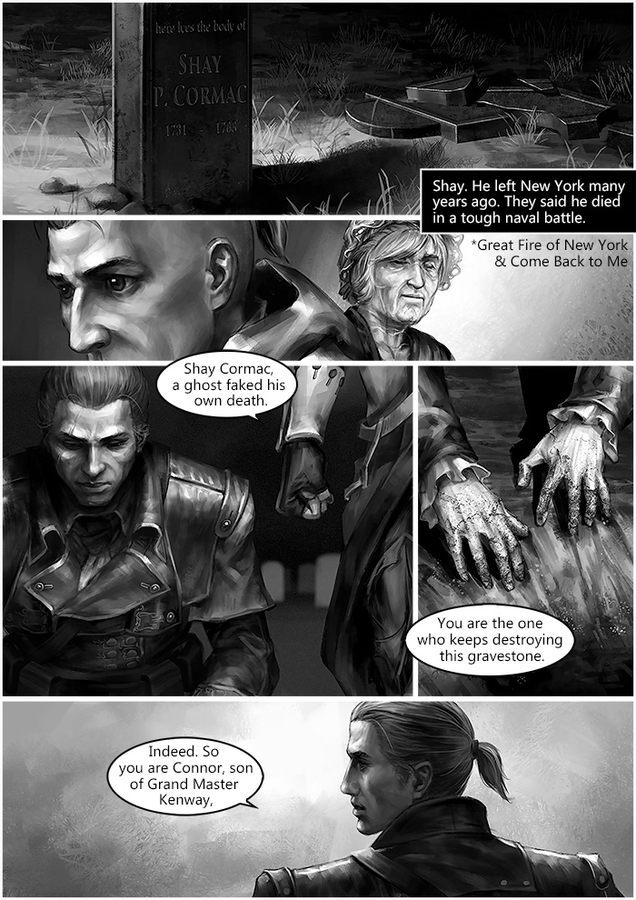 December 4th 1783, during George Washington’s farewell to his officers at Fraunces Tavern, Connor met Shay. Later that night, Shay brought a birthday gift, which from 50 years ago, to Haytham’s grave. From then on until 1863, the whole New York was under Templar’s control, due to the Assassin hunter group built by Cormac family.