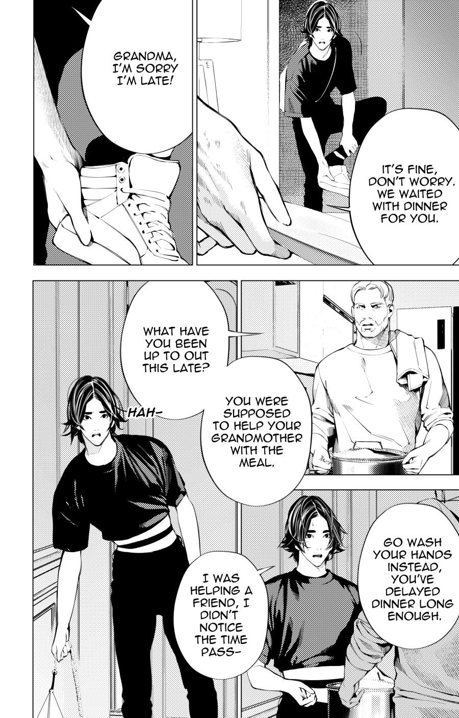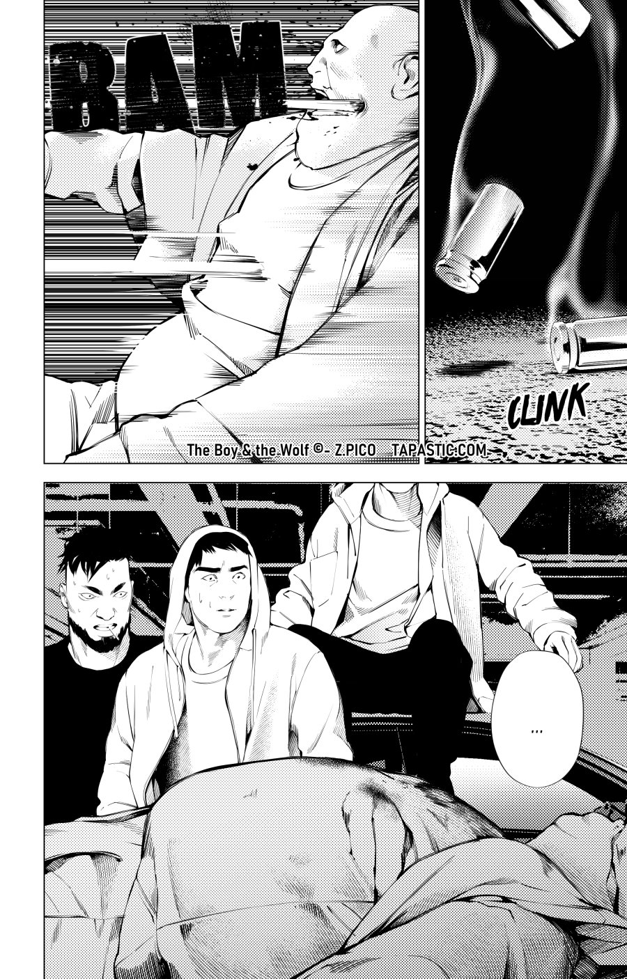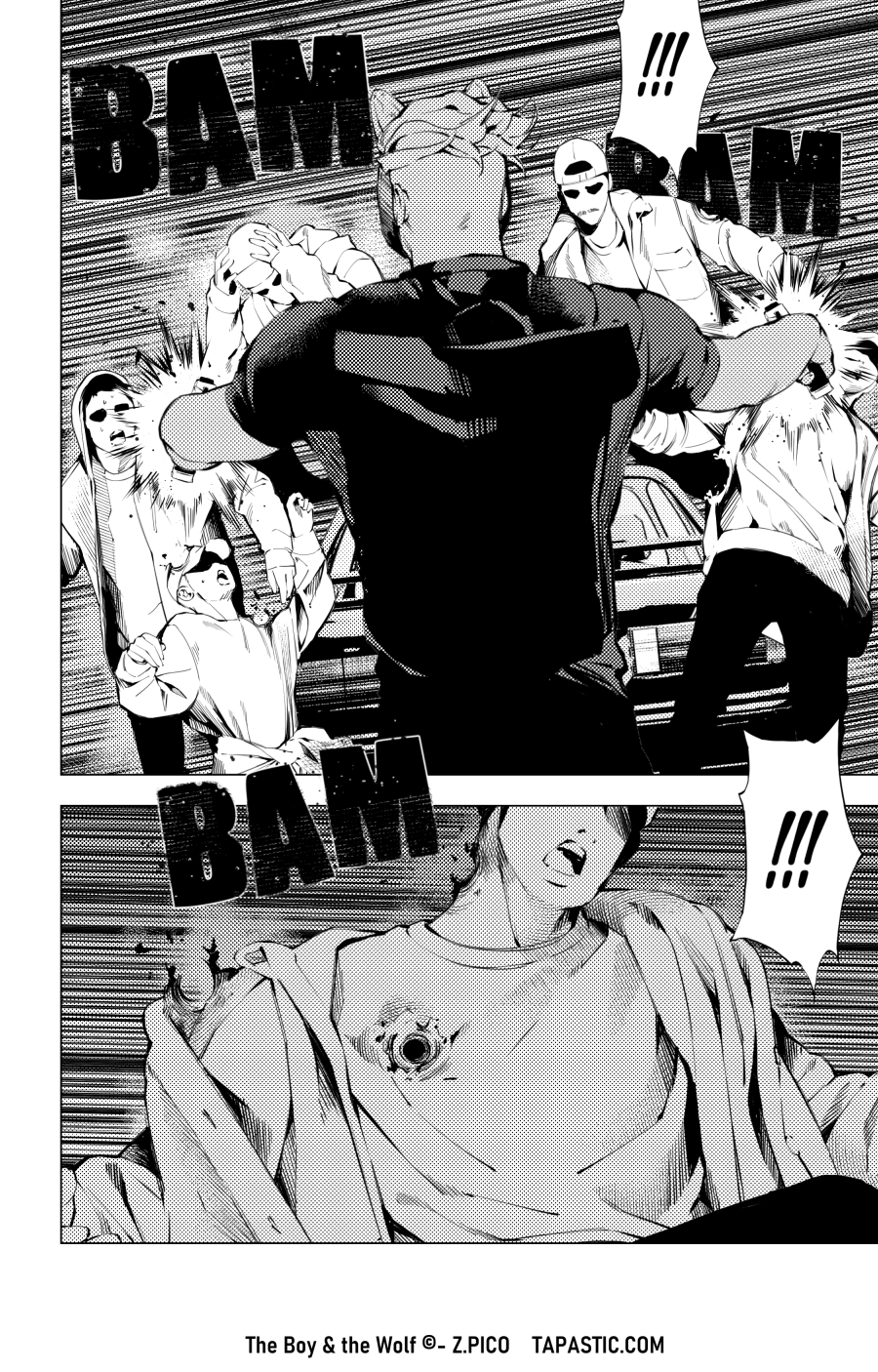 I also wanted the scene to show how angry Tera still is, he didn't cool down from the previous fight with Muta and only had one idea: to kill him. He also kills all the others so that this gang "disappears" and no one is tempted to take over and come back to bother the Boy.