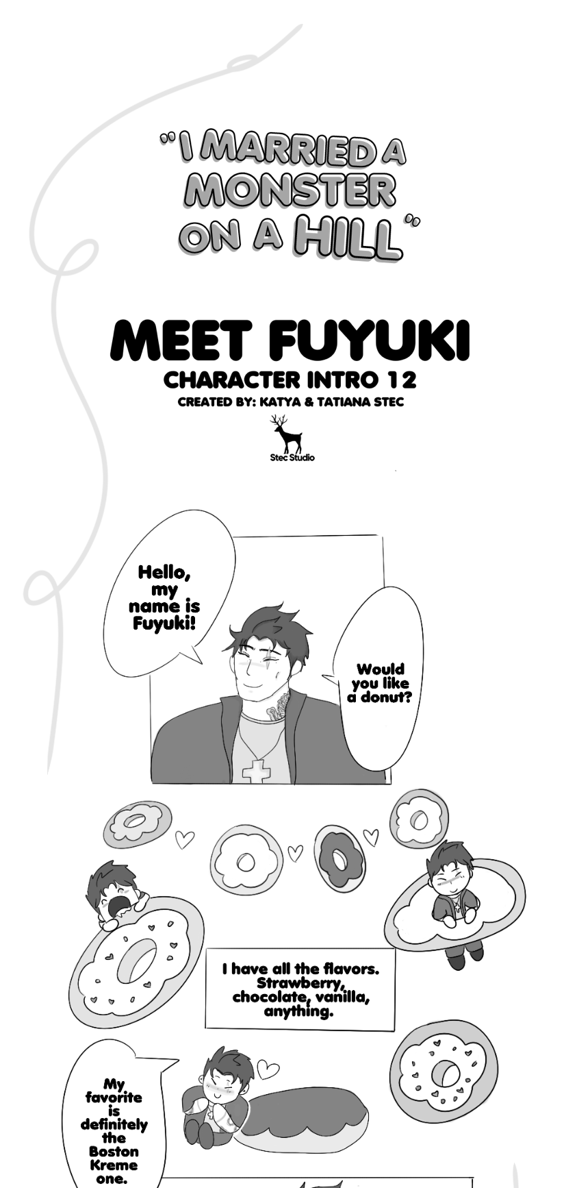 Meet Fuyuki! He loves donuts, church and spending time with his best friend August and husband Issac. He's a big softie who always tries his best to make others happy.