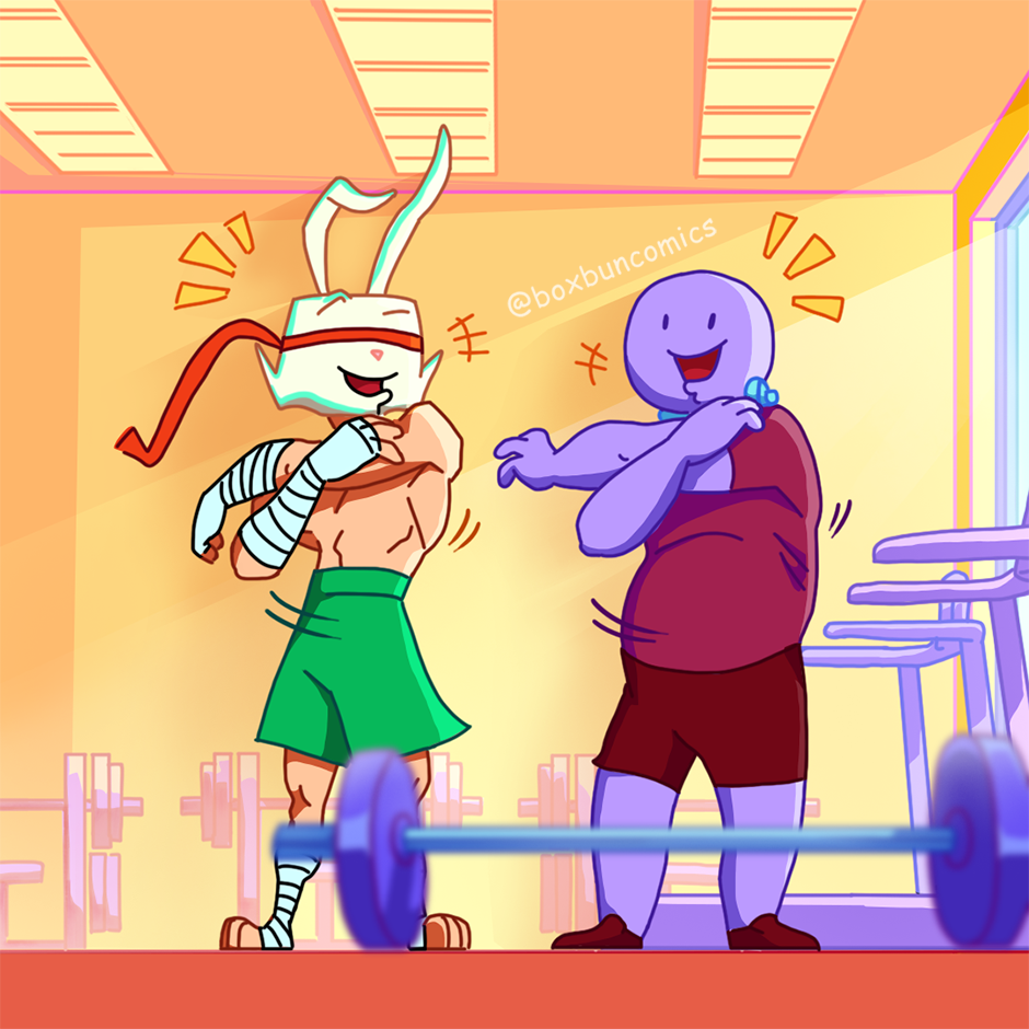 Boxbun: The funny bunny loves fitness and always adds humor to his workout routine with funny moves and silly expressions