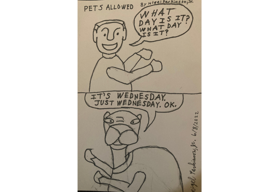 Hello, my name is Nigel Parkinson, Jr. I created Pets Allowed where imagine there were normal pets, but later pets were able to talk and live different lives then they did when they were pets. Pets had to work and find places to raise there family. Pets Allowed, you will see pets as they were and pets where they are now. Pets talking to other pets and pets talking with humans.