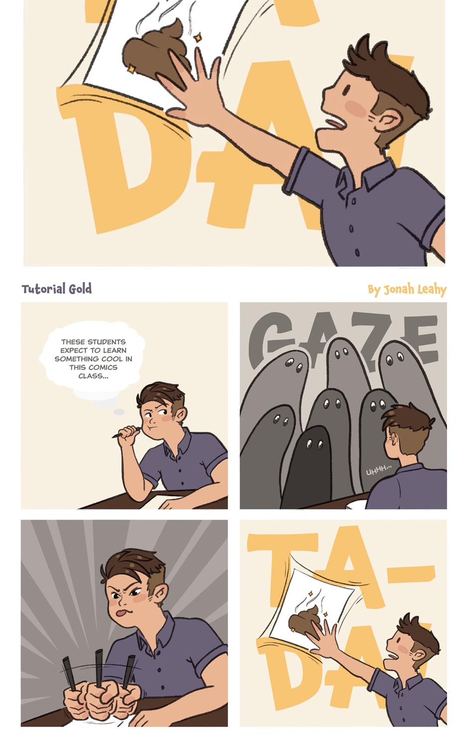 Sometimes you need to teach a class how to make a 4-panel comic in about 3 hours and you don't have any ideas...and then you strike gold 💩✨
