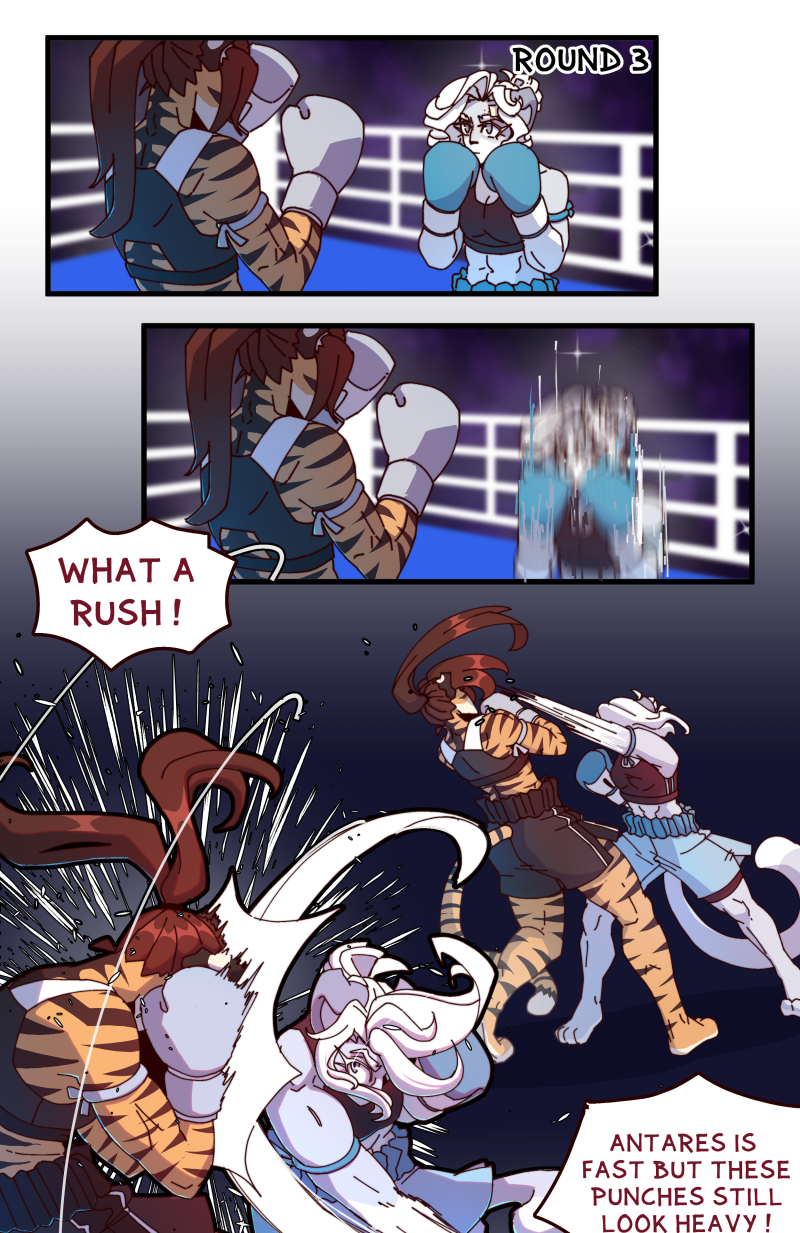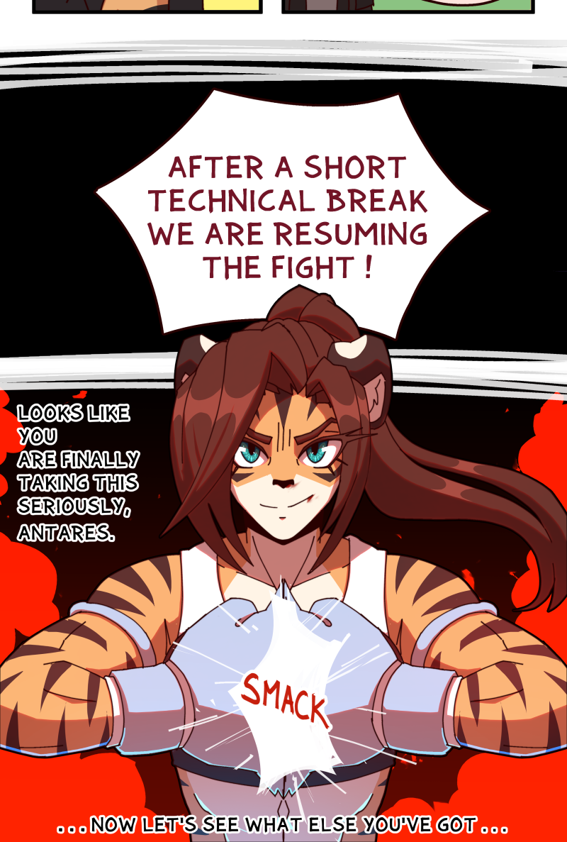 Who will prove to be the better fighter? The militarily trained warrior made for combat? Or the street-hardened street-smart woman from the dark alleys? Will Antares' discipline and training be enough to overcome a height and weight disadvantage or will Sierra's grit overwhelm the Avelaris soldier? The rules are simple. A round lasts until someone goes down. The fight lasts until someone can't get up. No excuses. Only one winner and one loser!