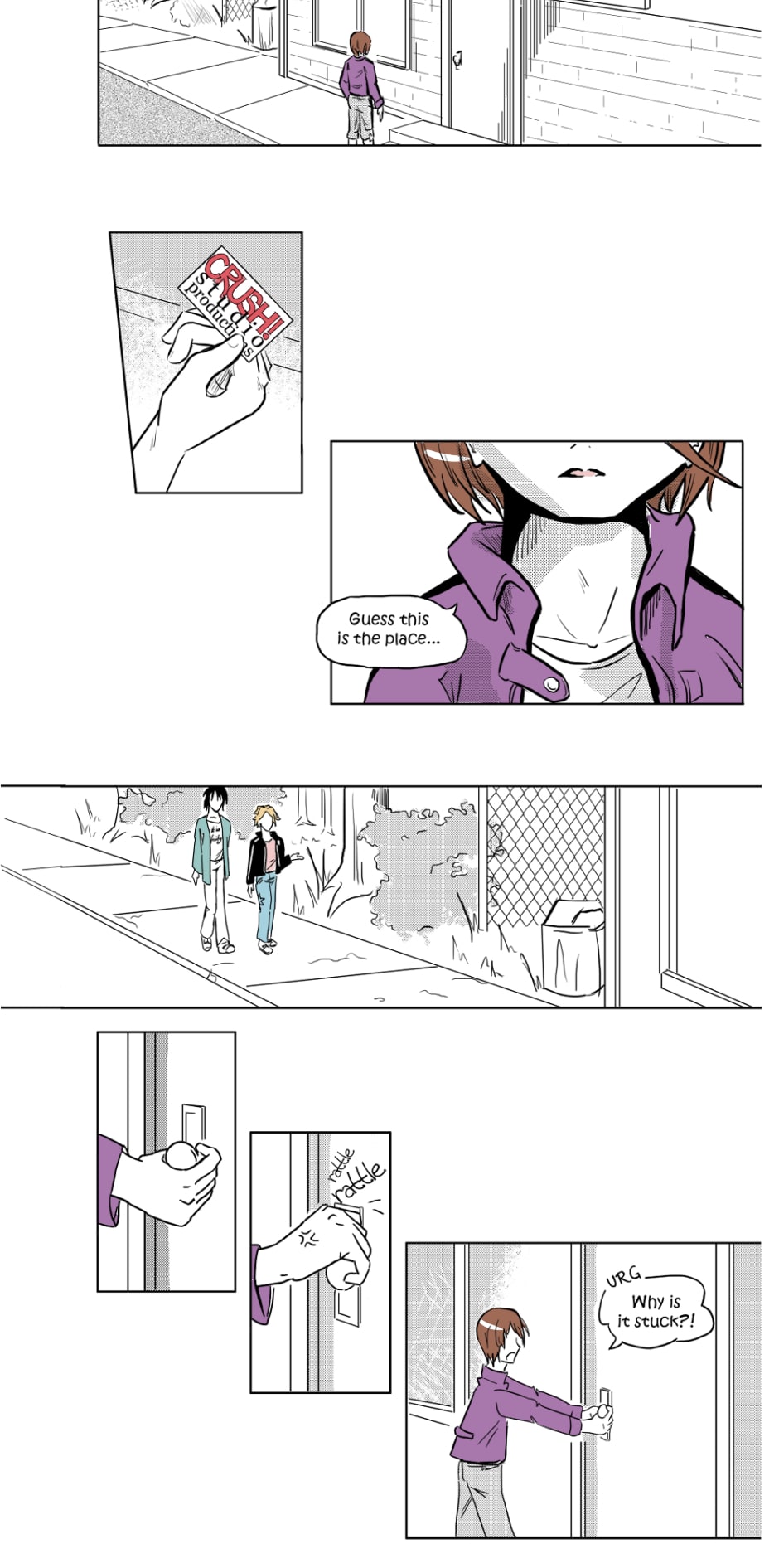 These pages were drawn back in 2011 when we first put CRUSH! out into the world. You'll notice the style may be a little different from the most recent pages on our site, one being the lack of color (color started on page 529). But this is the first we saw of our guys (some of them, at least).