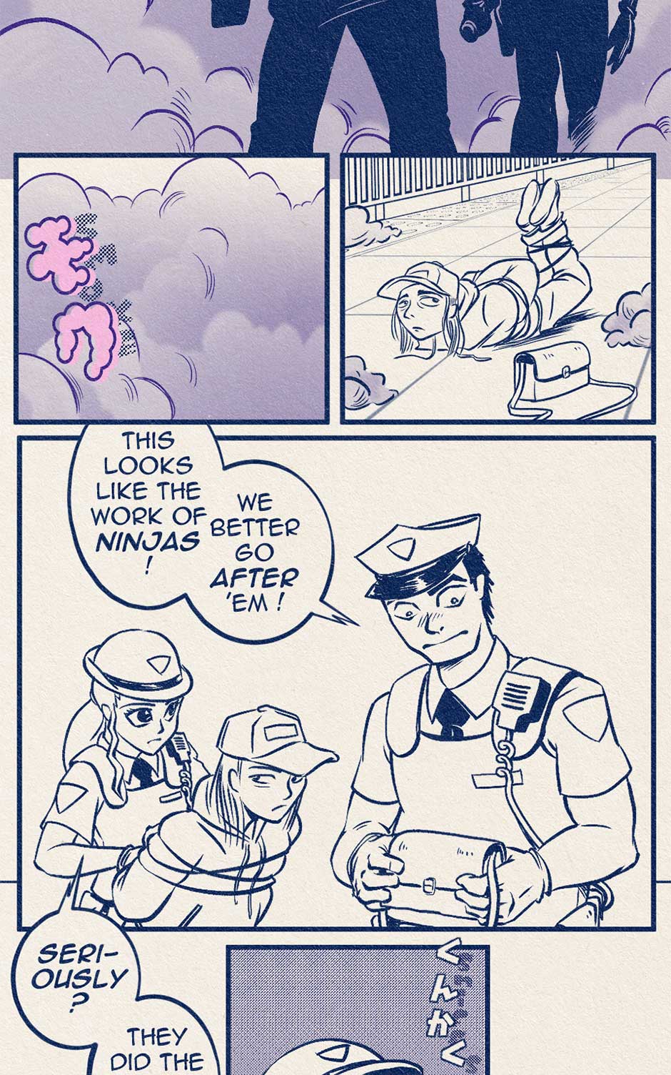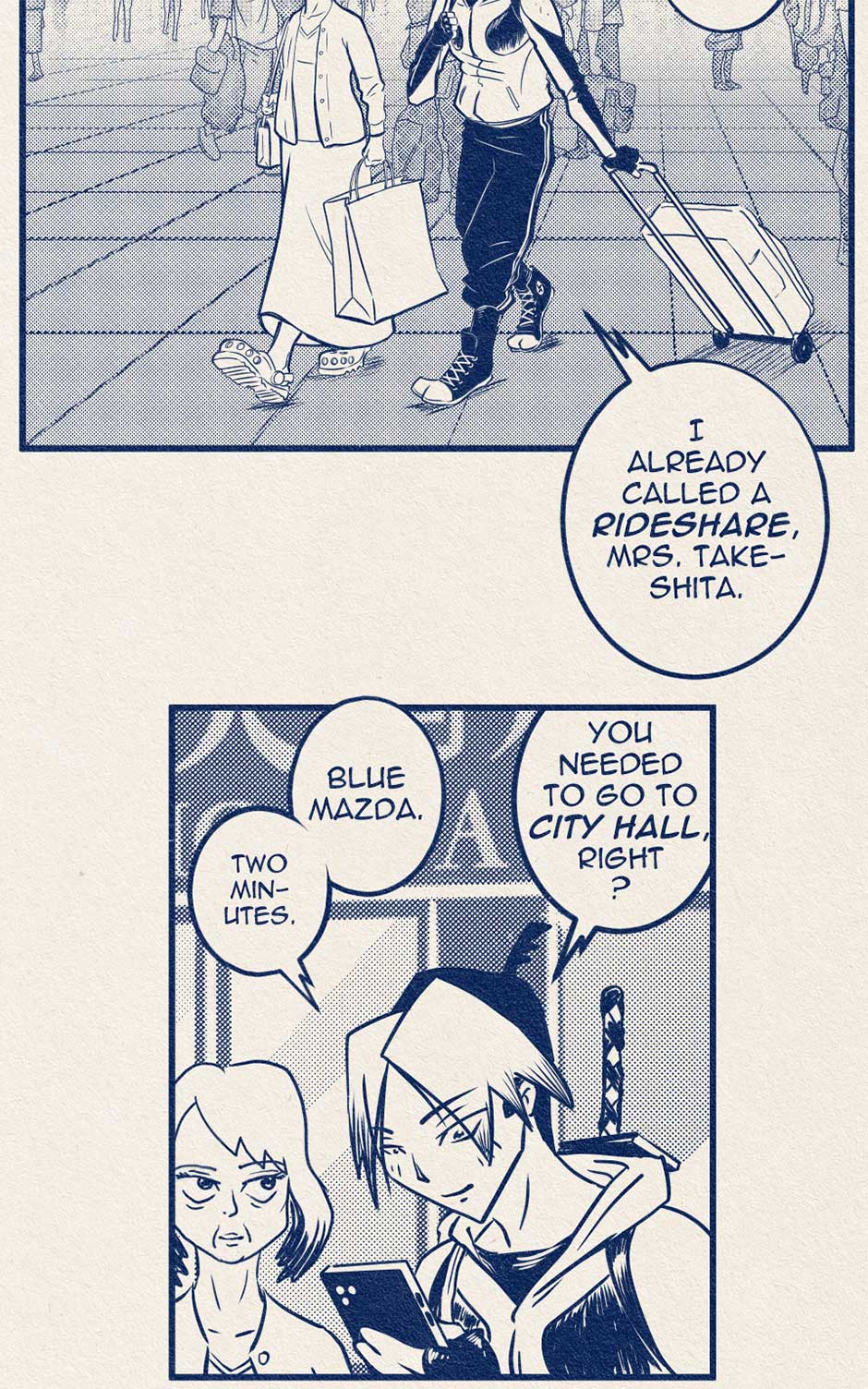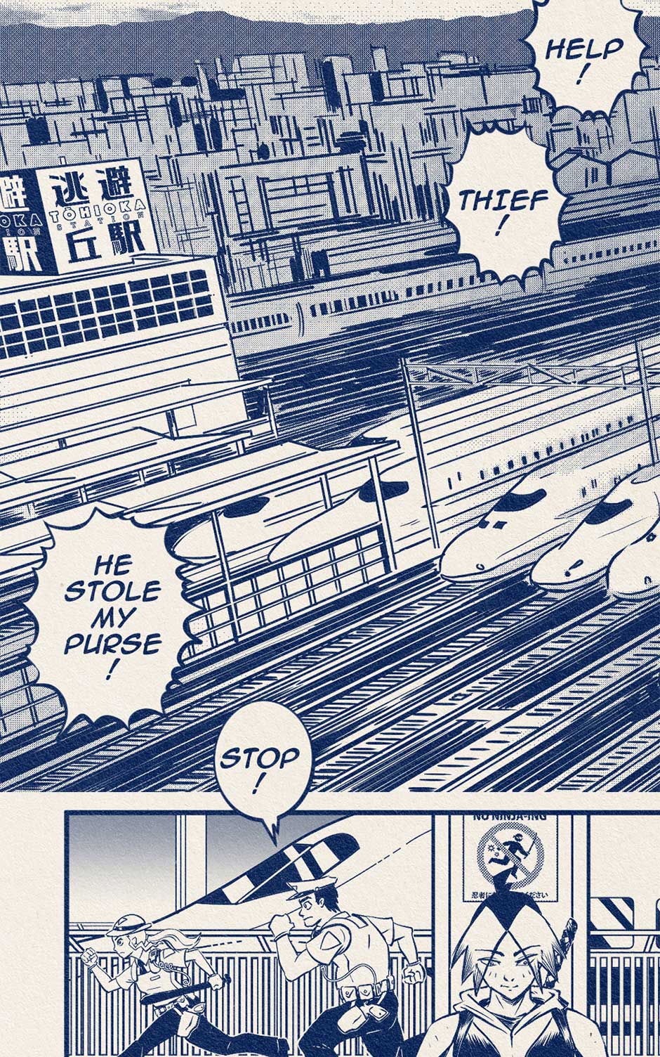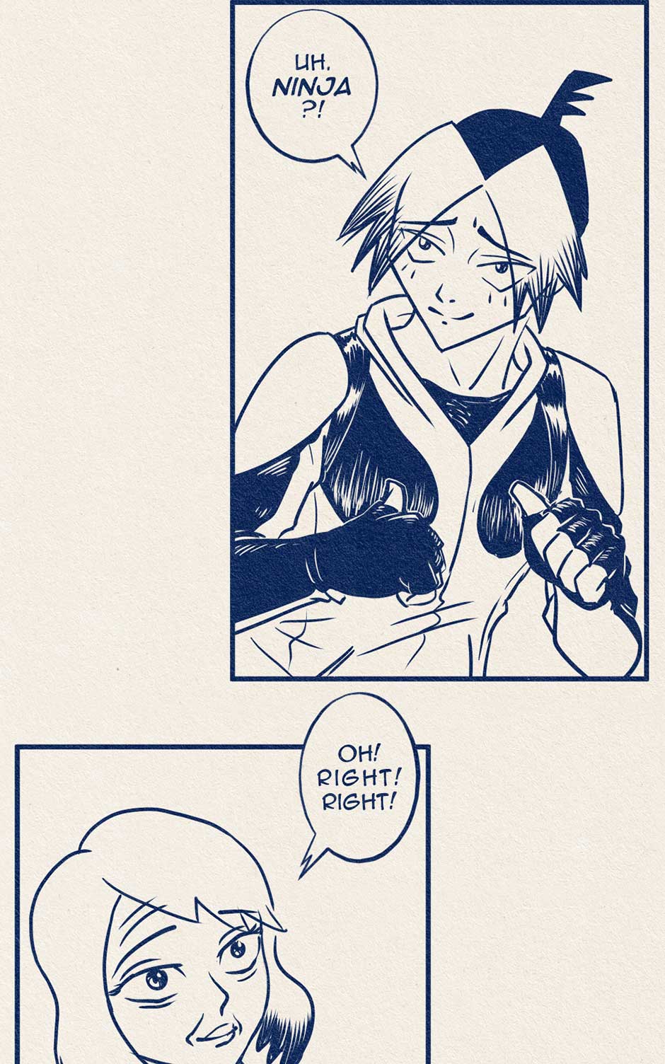There are Ten Best Ninjas in the World. Each one strives to be The Very Best but must kill their way to the top in a deadly championship of death! Koji Nakamura just might be the Best Ninja in the World... but he really doesn't want to be. It's something his mom made him do. He'd rather take online Improv Comedy classes. But he is torn by his ambivalence and the perks of being one of the Best Ninjas in the World. Perks like 80% off oil changes, free monthly movie tickets, plus he might win that raffle at the International Ninja Union Annual Holiday Party! Follow Koji Nakamura as he travels around the World, tries not to die, and fails to tell his mother what he really thinks in this comic that sort of resembles an old manga.