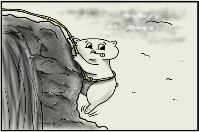 With his little heart racing from all the effort he put into pulling himself out of the trouble, Edwin leaned over the edge of the cliff to see the gravity of his situation.