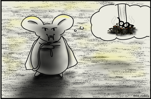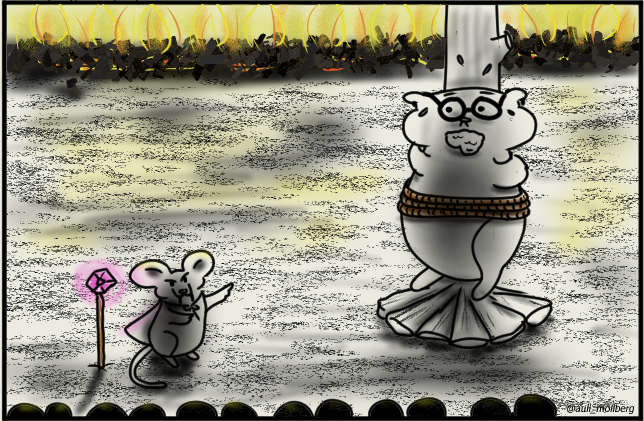 Finally it faces the crowd again, cradles his tail and mutters in a sinister tone. Edwin doesn't understand the little things but he has a good guess, what is going to happen next.