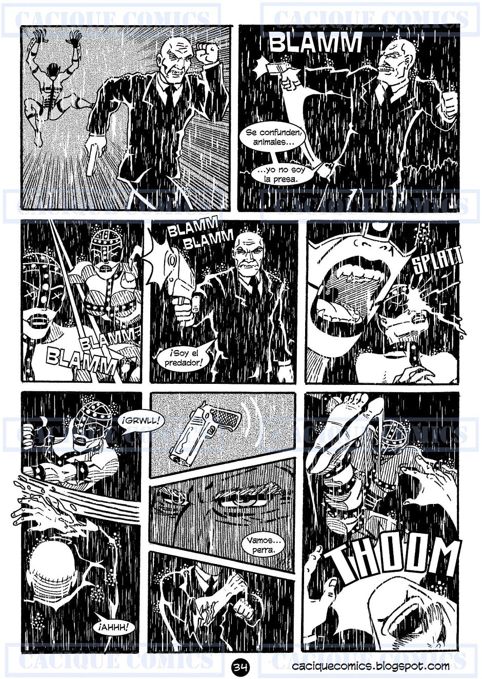 SOMBRAS: es un cómic independiente de superhéroes en blanco y negro, relatado de una manera distinta, con reconocibles elementos clásicos de los cómics de la década del 90 pero hecha hoy, tanto en el estilo gráfico como en la narrativa, pero sin la censura acostumbrada en los grandes sellos.