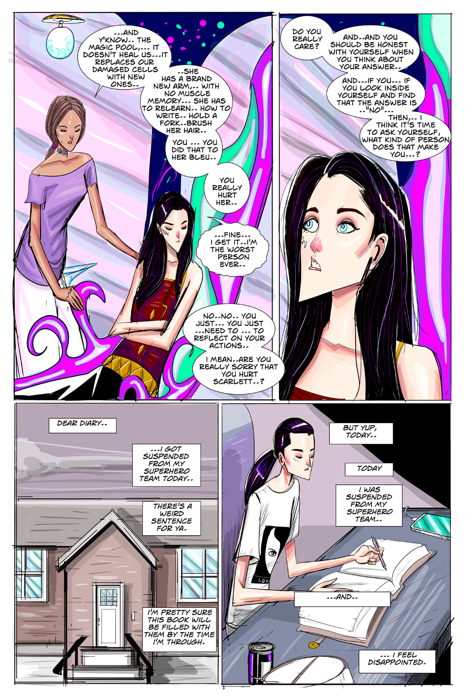 Sapphire Bleu is new to being a superhero, she's having trouble adjusting to the lifestyle. The fights, trying to maintain a healthy, normal life, trying to get some sleep. There's no one she can talk to about these things so she writes about it in her diary, and prays that this will somehow save her troubled soul.