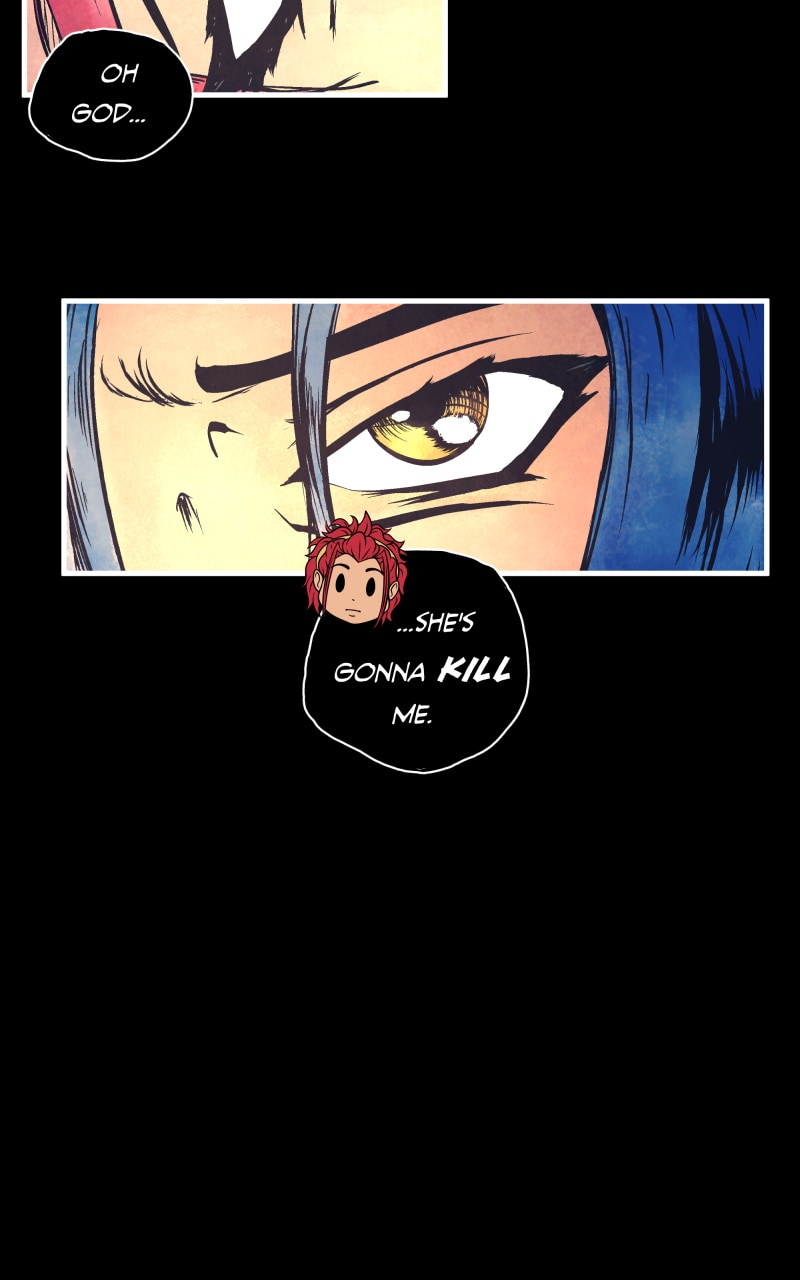 An unfortunate red haired girl woke up in a dark, strange world full of dangerous creatures. She finds herself on a journey with an odd companion: the resident supervillain who took her prisoner. Though moody and stoic, she finds the villainous woman is still somehow... intriguing?