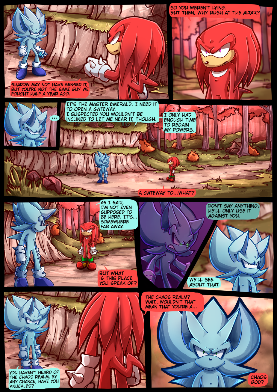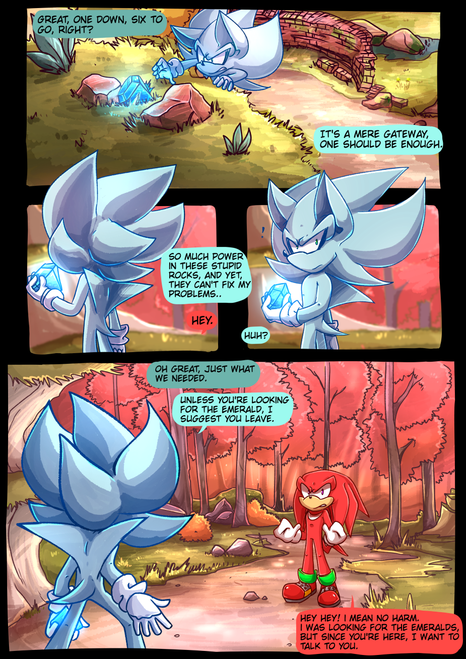 He runs into Knuckles, however, whom to his surprise comes with questions instead of punches and with Sonic & co. arriving amidst it all, little does everyone know they're about to go on the journey of a lifetime..