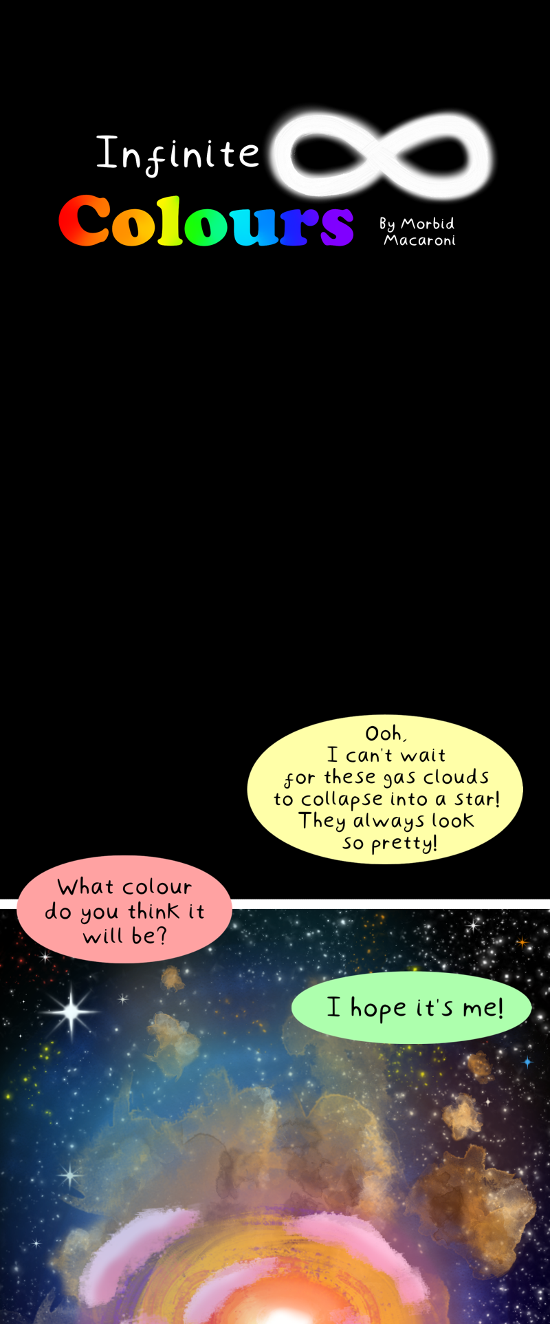 It was dark for a very long time. An extremely long time. A time so long one may even wonder if time still exists at all. That was until the universe was made a new and millions of colours filled the void. Warmth, light, activity. Finally, the darkness had company. But will it last this time?