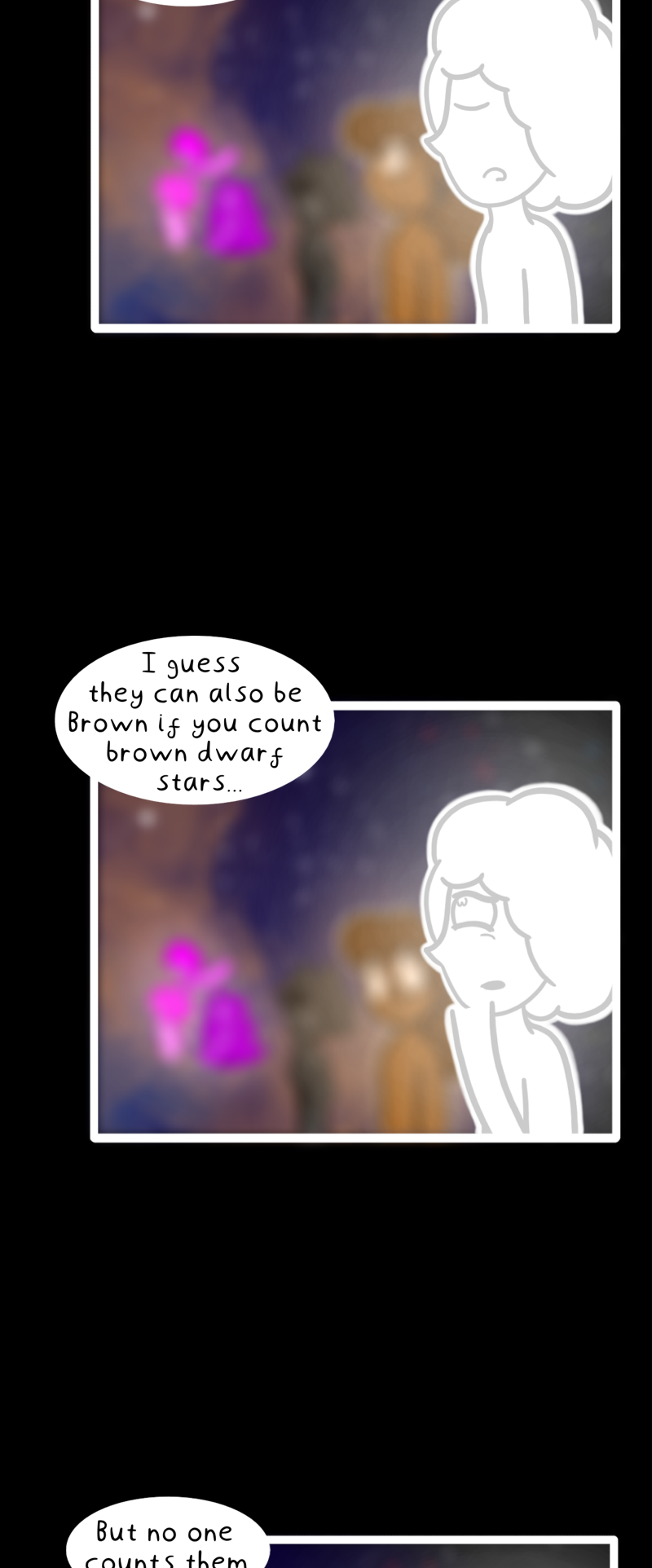 Fun fact! Brow dwarf stars are stars that… aren’t… really… stars… yeah. Basically, they aren't massive enough to perform nuclear fusion and have a surface temperature of 1000K (Kelvin) or less. That temperature would still kill you but it’s pretty cold when comparing it to actual stars.