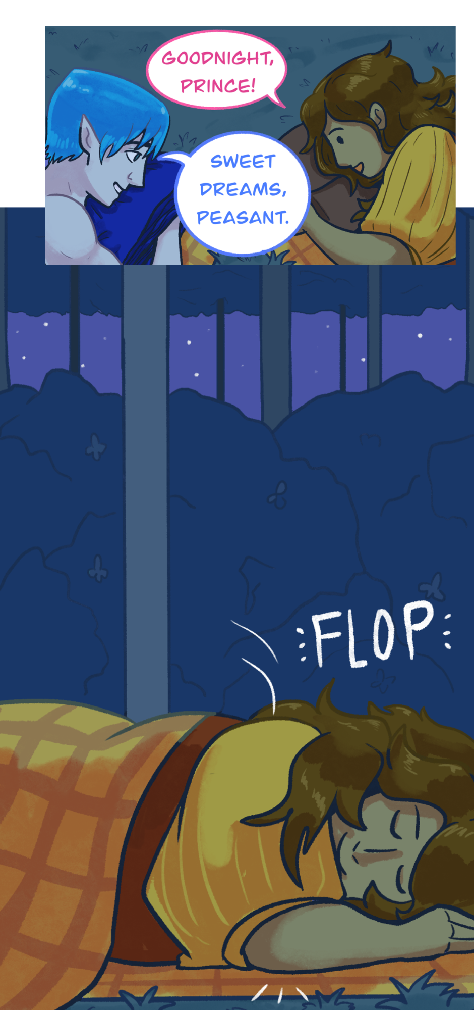 Frog Prince is an anxious froggy adventurer and diplomat! Human Peasant is a laid back girl with a passion for fashion, cute things and punching stuff! Join this gay little frog and his lesbian friend as they brave fashion shows, treasure hunts, competitive compulsory romance, and all manner of adventure with their many friends!