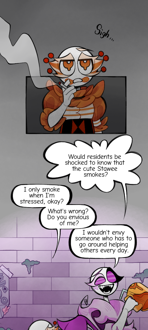 Stawee and Wellisau are two moreerie in Mosoulbid Town. But the town also a target for Satan's attention.In order to prevent specter citizens and the townspeople from being harmed, Ghost Boss made a deal with Satan: if Satan doesn't destroy the town, the Ghost Boss will regularly provide her with her children, the moreerie, to be sold in Hell.