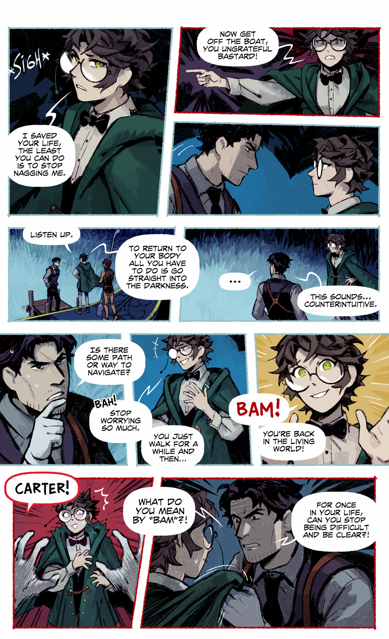 HAYDEN’S NOTES is a magic realism mystery with horror elements, set in the fictional country in the first half of the 20th century. The comic’s told in the non-chronological order revolving around Hayden Carter, immortal (by accident) gray mage, pursuer of knowledge and a witty nuisance for everyone around.