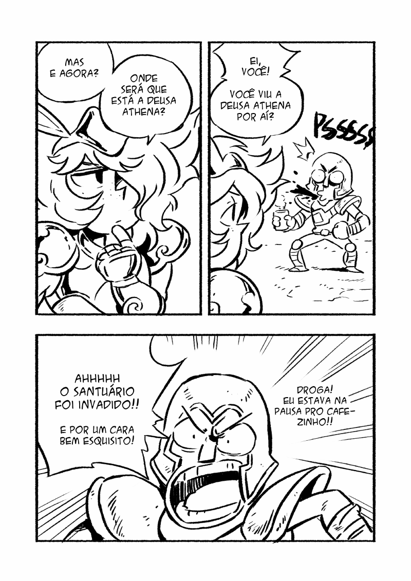 A primeira parte conta com 66 páginas sobre o que acontece em um dia no Santuário quando a dona da "coisa" toda - A Deusa Athena - não está por perto!