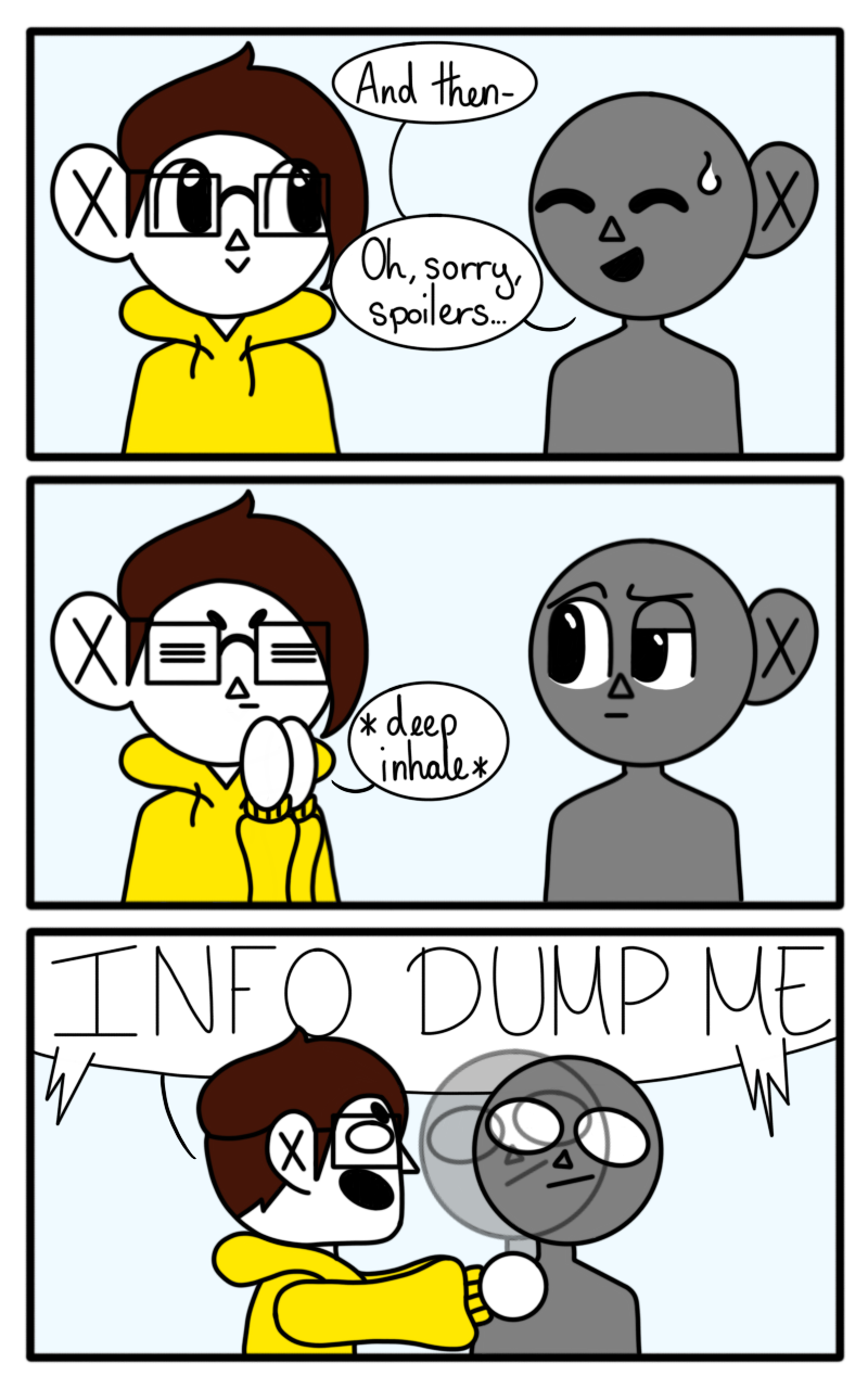 I literally do not care about spoilers for anything. I will let my friends and family info dump about subjects they like and not be bothered at all. I welcome spoilers, because then I look for the things mentioned if I get into that subject too. It's fun!