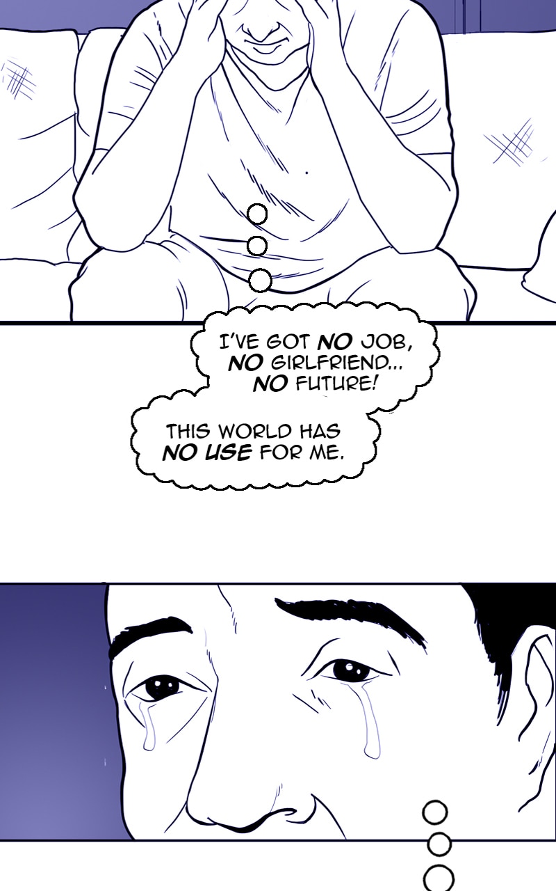 A sad sack loser decides to kill himself.