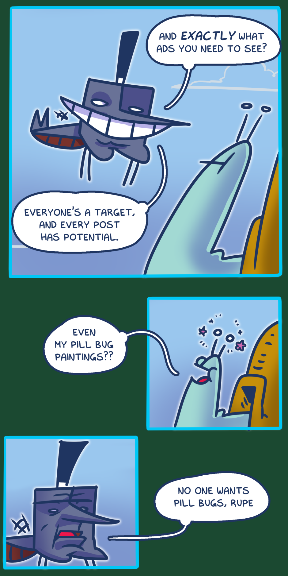 Time for Rupe to install an ad blocker into his shell and redeem himself with a #JusticeForPillBugs movement to become trending.