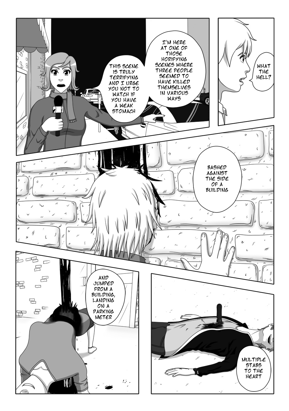 It's going to take the mortician hours to get that smile off her face. (The impaled woman.)
