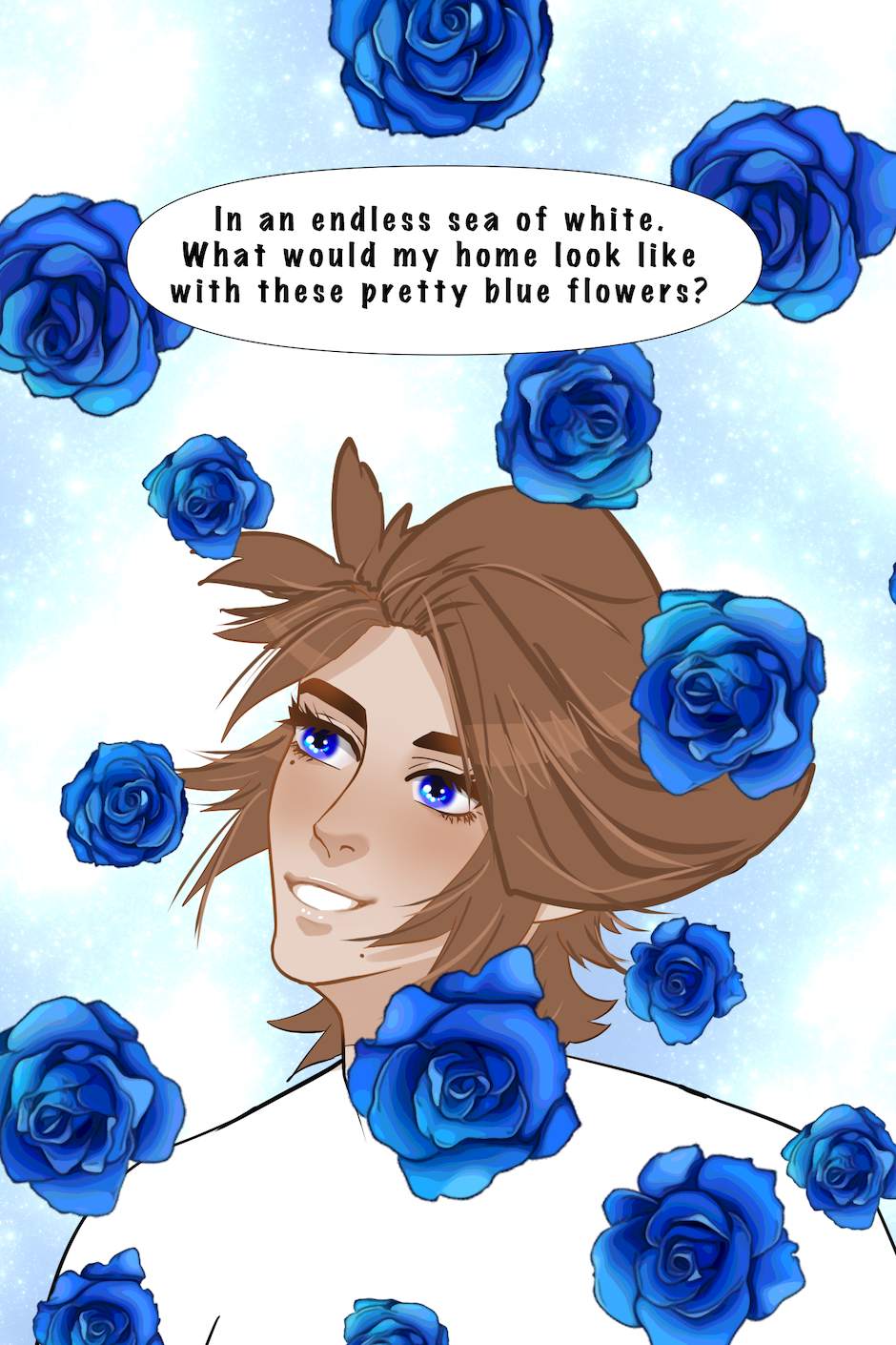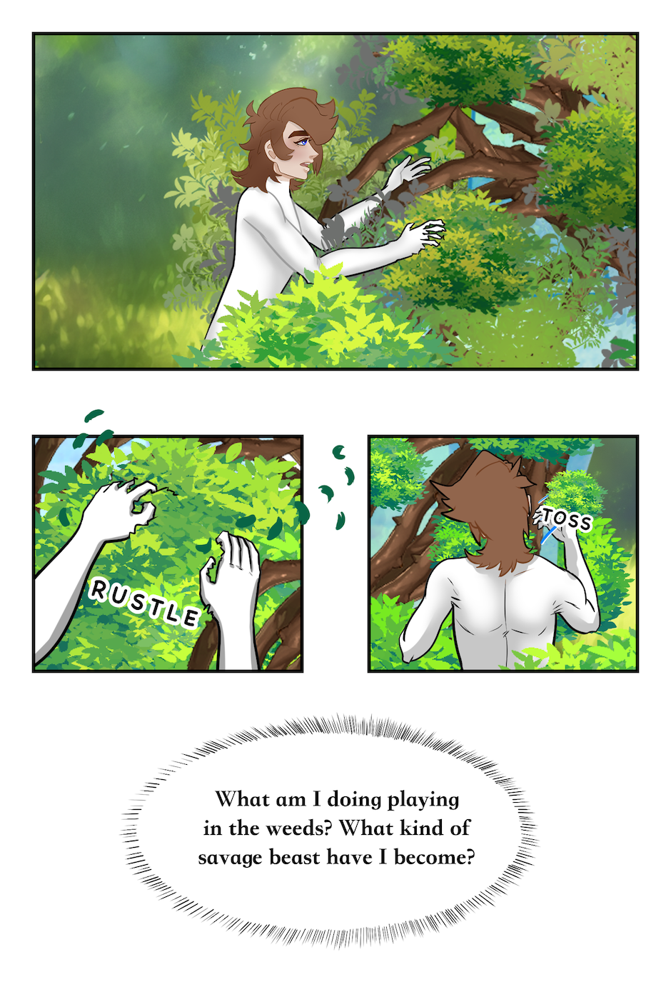 18 y/o Evalieh Lassoy refuses to follow his oppressive society's rules and gets thrown into a world of magic and freedom as punishment. He is found by sun worshiping bean people who dub him their "Divine One" and task him with saving their island and the 6 magical clans so that, he can survive the encroaching enemy and secure his path back home. Although he's short tempered, easily excited, and small-minded, he starts to warm up to this strange new world and its people.