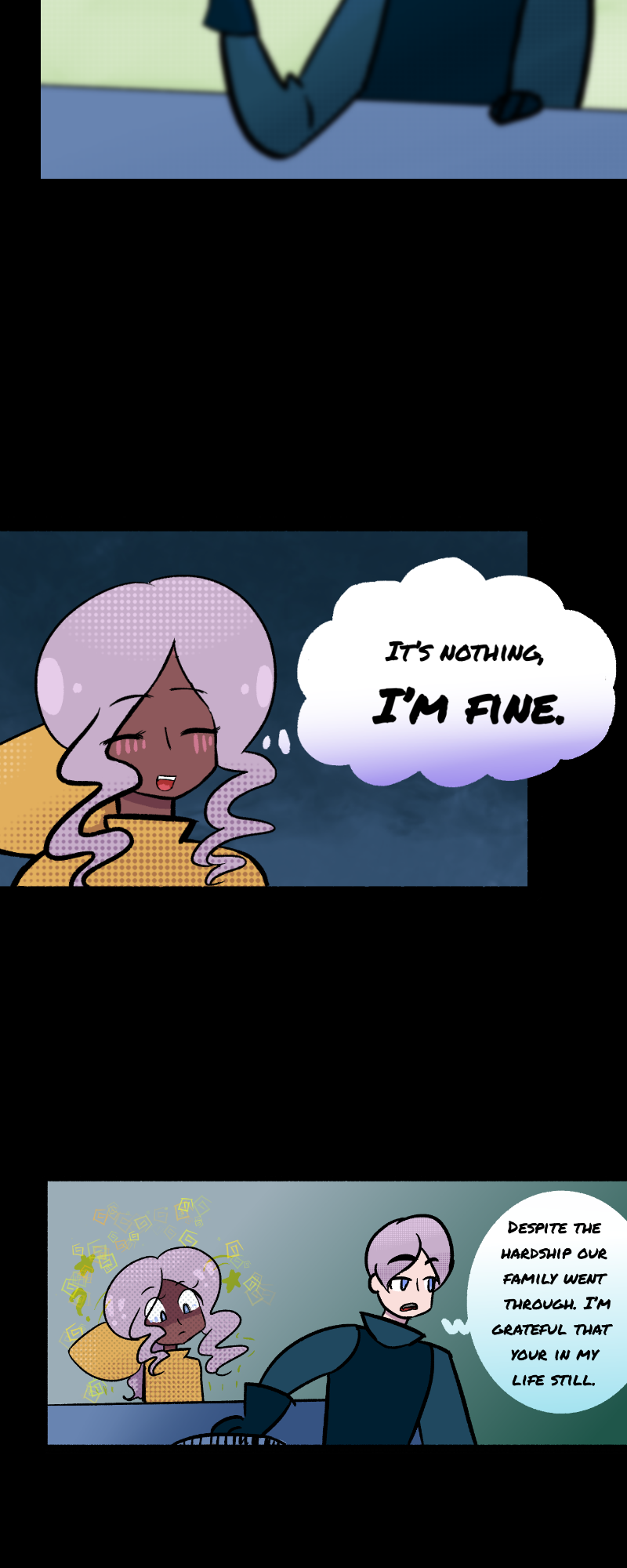 Gotten a stomach bug again, finally feeling better enough to post this. Though this episode is shorter this time around because next episodes or few might be longer. Schedule of posting the comic will still be odd for now.